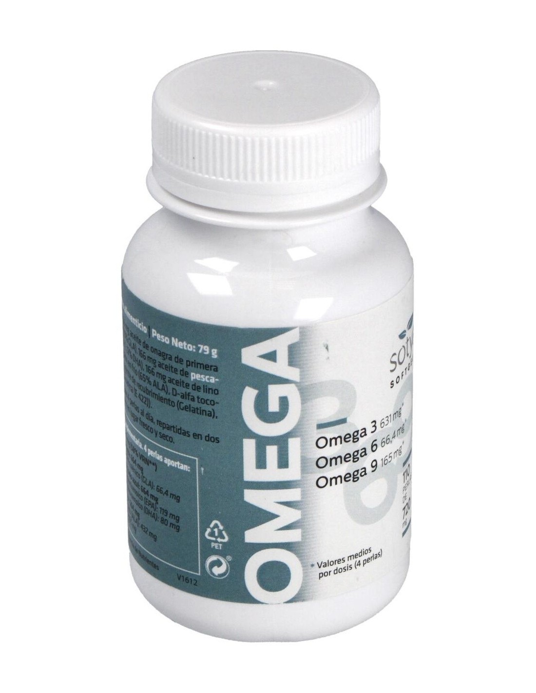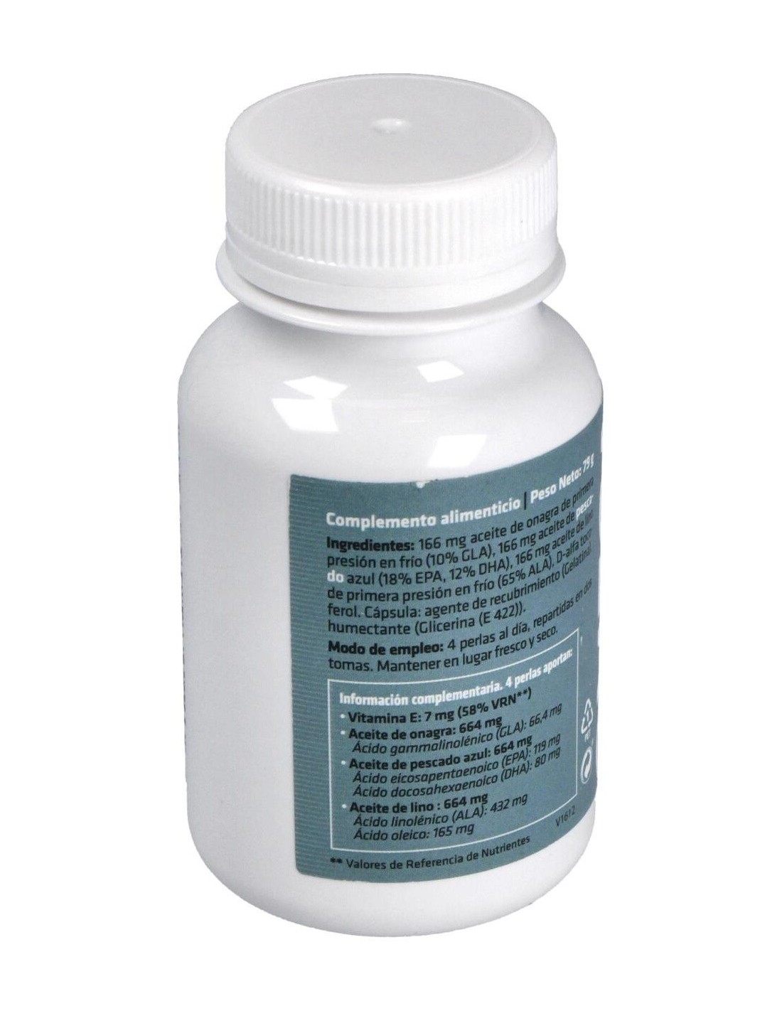 - Cada perla contiene 720 mg de una mezcla de ácidos grasos omega 3, 6 y 9, contribuyendo a una ingesta balanceada.