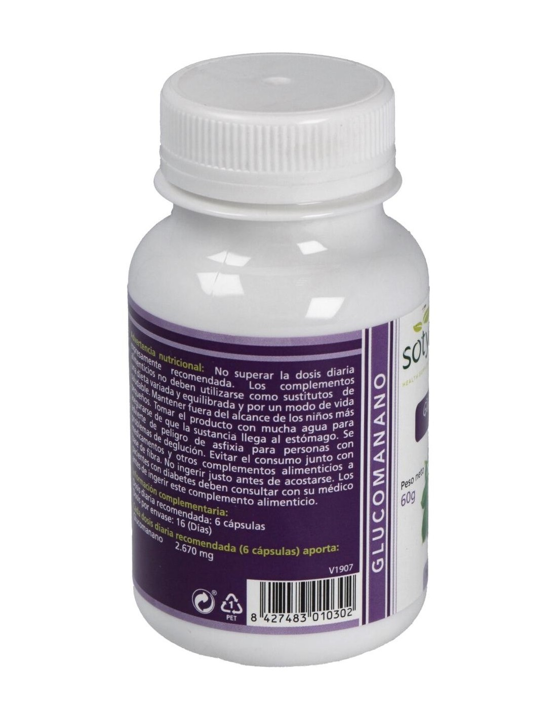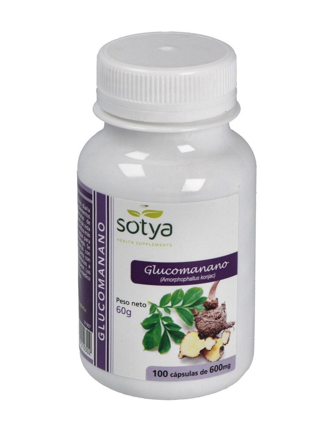 Glucomanano 600Mg Cáps. 100U de Sotya es un suplemento dietético diseñado para personas que buscan complementar su alimentación con una fuente natural de fibra soluble. Es adecuado para quienes desean apoyar una dieta equilibrada y mantener hábitos saludables.