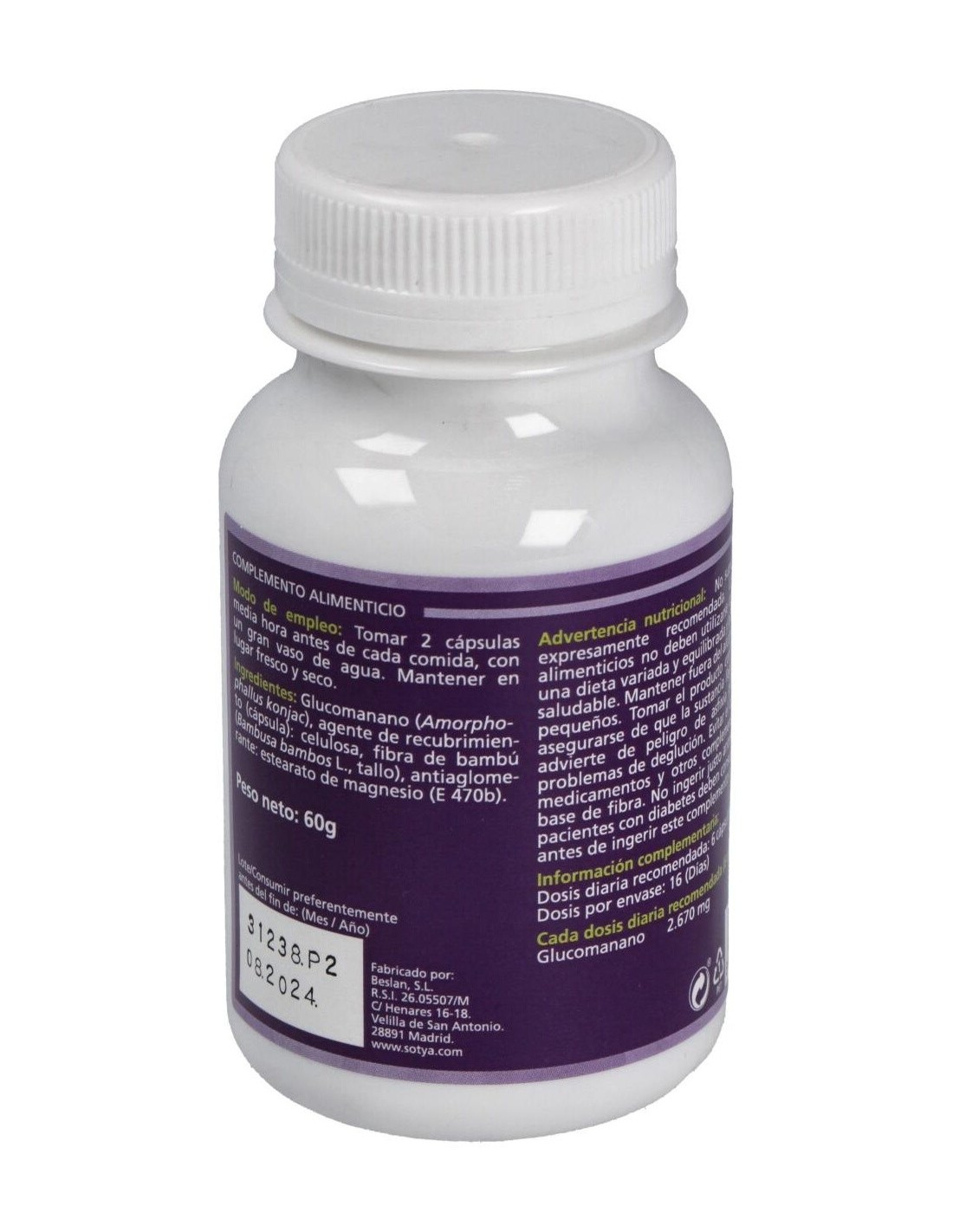 El glucomanano de Sotya se obtiene a partir de materias primas naturales, procesadas para conservar su pureza y funcionalidad. Su diseño en cápsulas permite una dosificación precisa, ideal para integrarse en diferentes planes alimenticios.