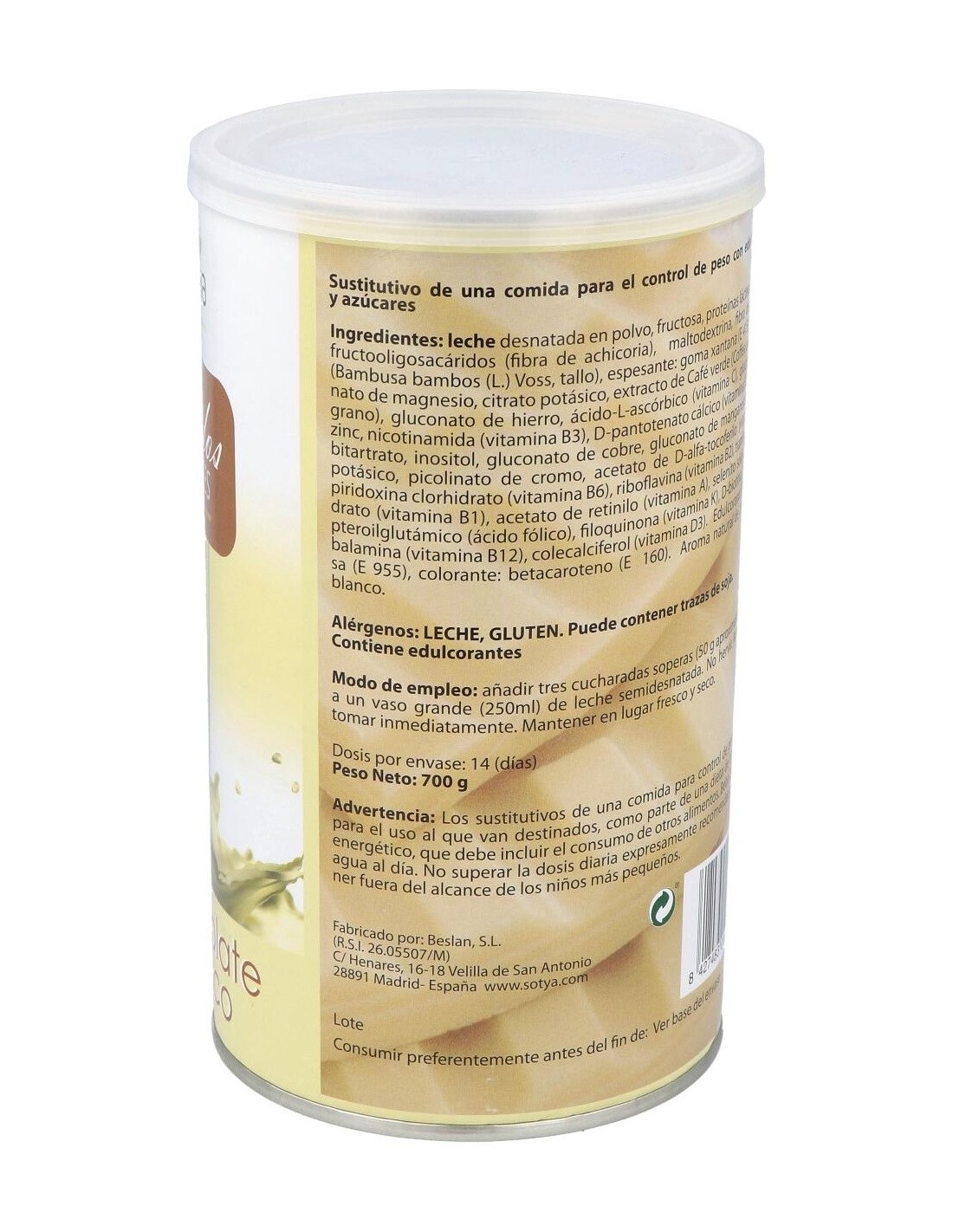 SOTYAEl Batidos Saciantes 700G Polvo Sabor Chocolate Blanco de Sotya es un suplemento nutricional para personas que buscan controlar el apetito, ofreciendo sensación de saciedad prolongada gracias a su fórmula equilibrada en proteínas y fibra.