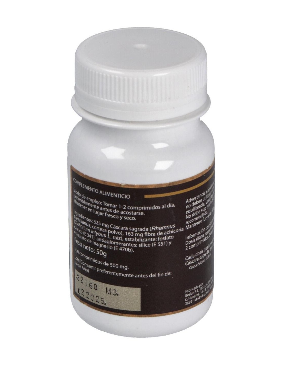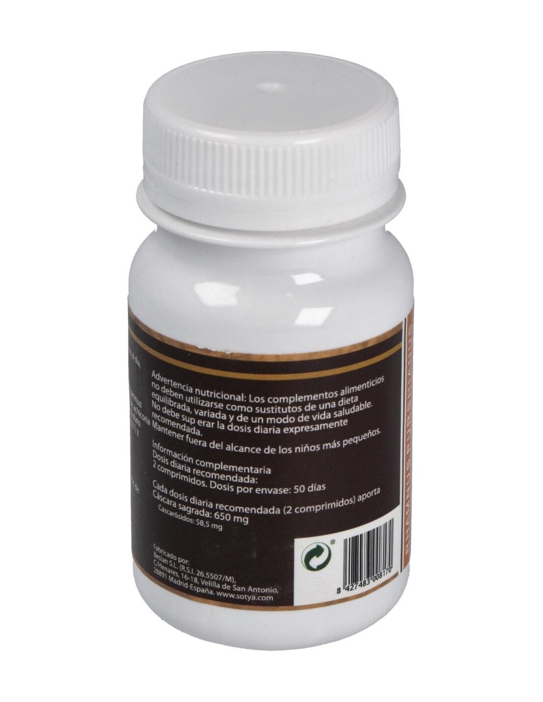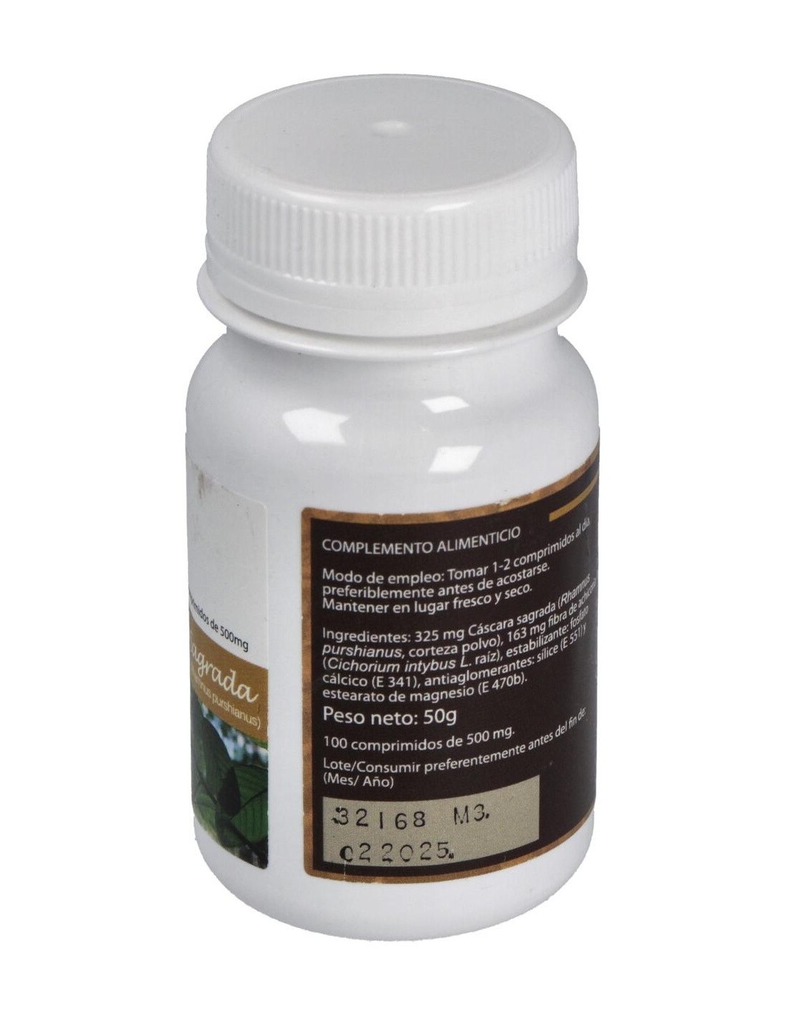 - Cada comprimido contiene 500 mg de cáscara sagrada, un ingrediente conocido por su uso tradicional en el cuidado del sistema digestivo.