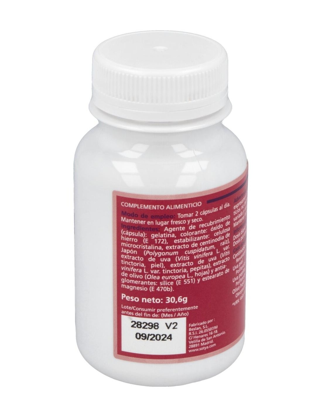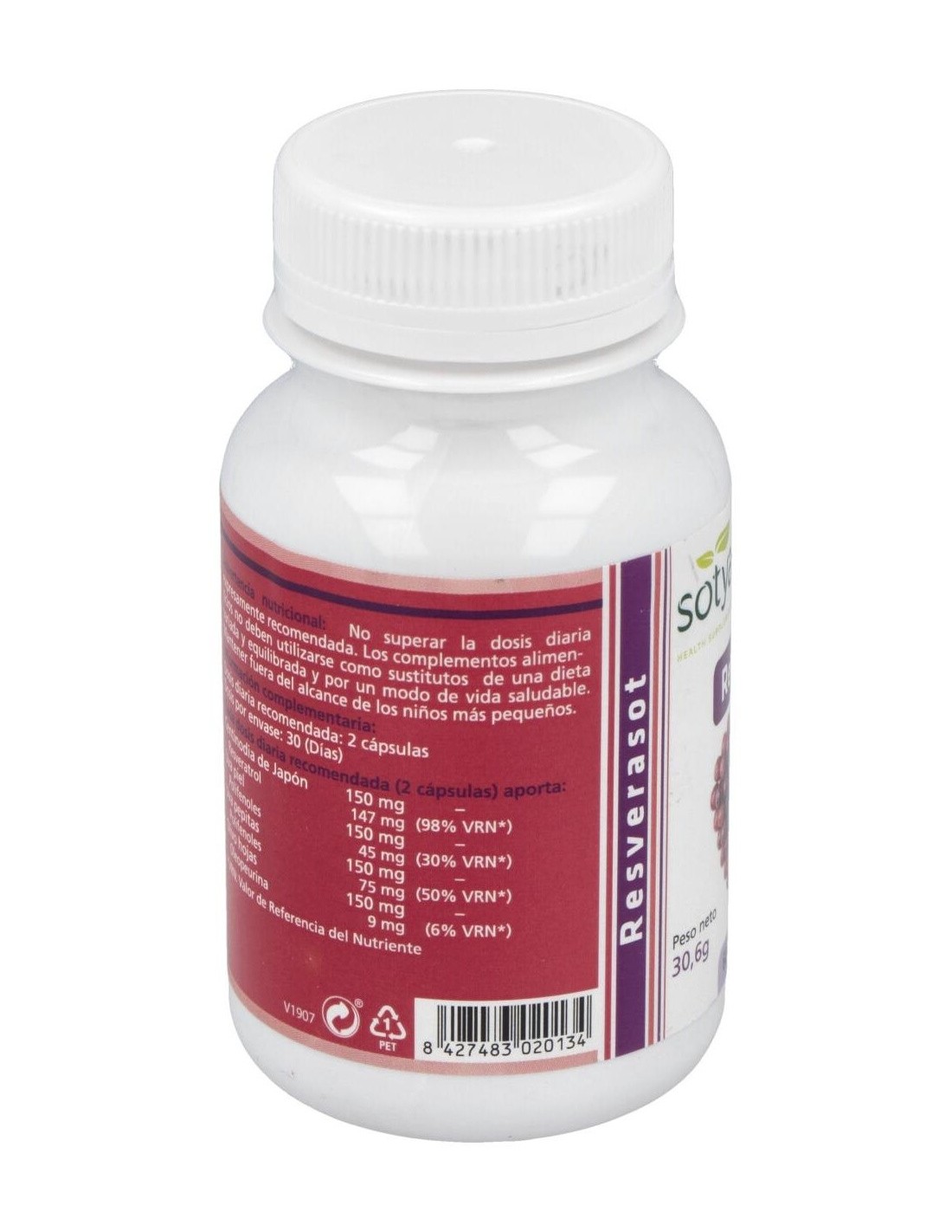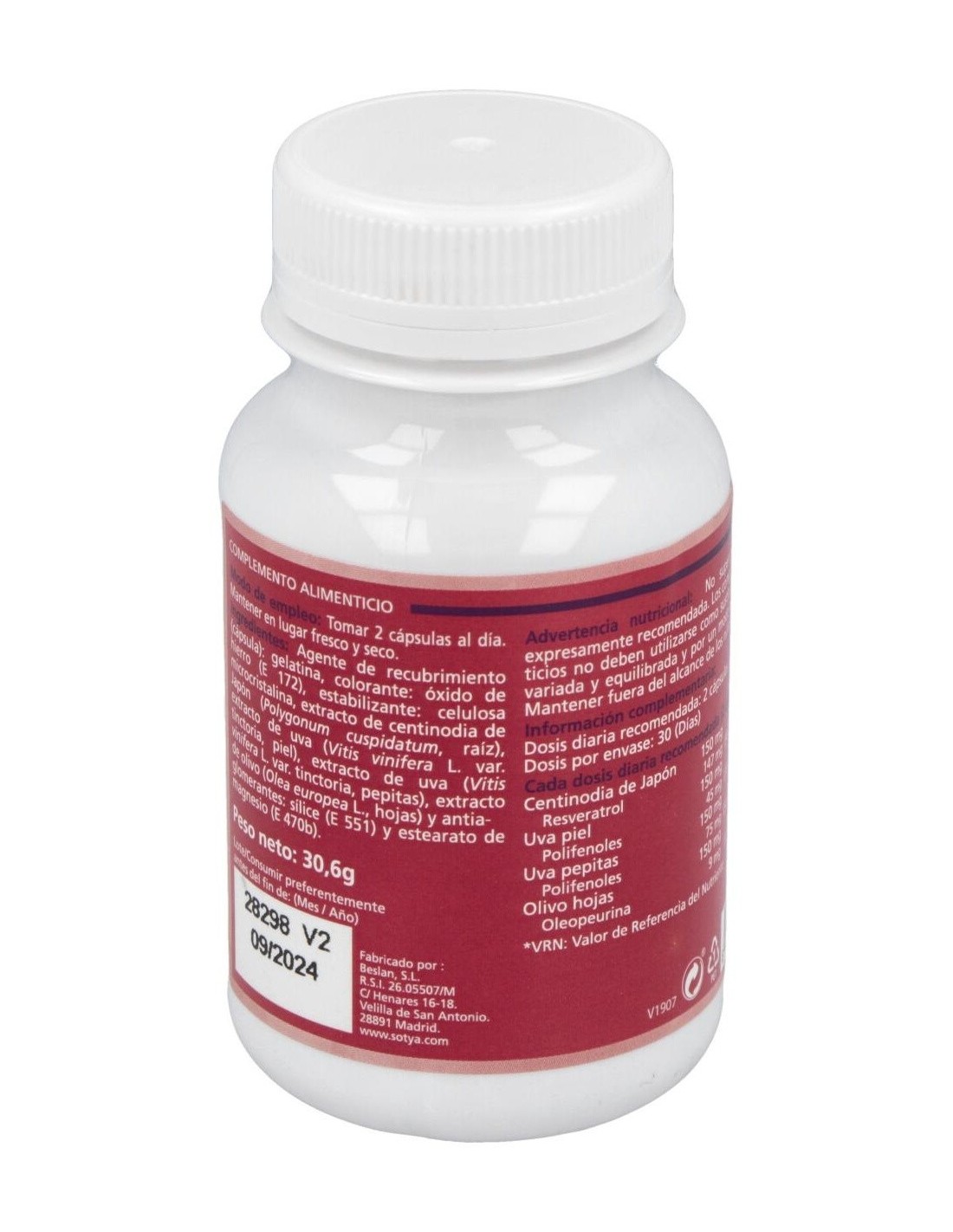 SOTYAEl Resverasot 510Mg Cáps.60U de Sotya es un suplemento antioxidante dirigido a personas que buscan apoyar su bienestar celular, formulado con resveratrol para contribuir a la protección frente al estrés oxidativo.