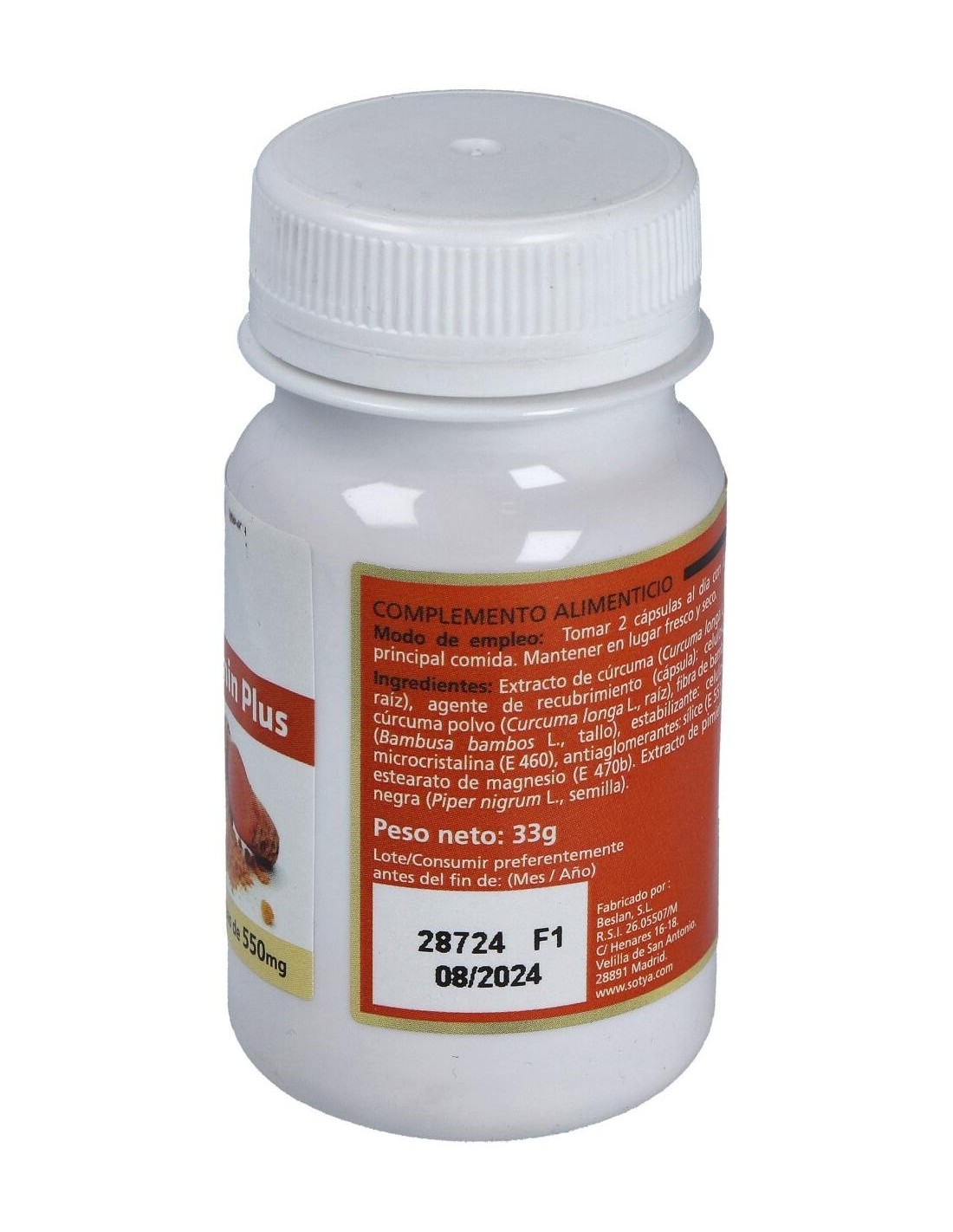 Curcumin Plus 550Mg Cáps. 60U de Sotya es un suplemento diseñado para personas que buscan complementar su dieta con curcumina, un compuesto natural presente en la cúrcuma. Este producto está pensado para quienes desean incorporar ingredientes de origen vegetal en su rutina diaria de bienestar.
