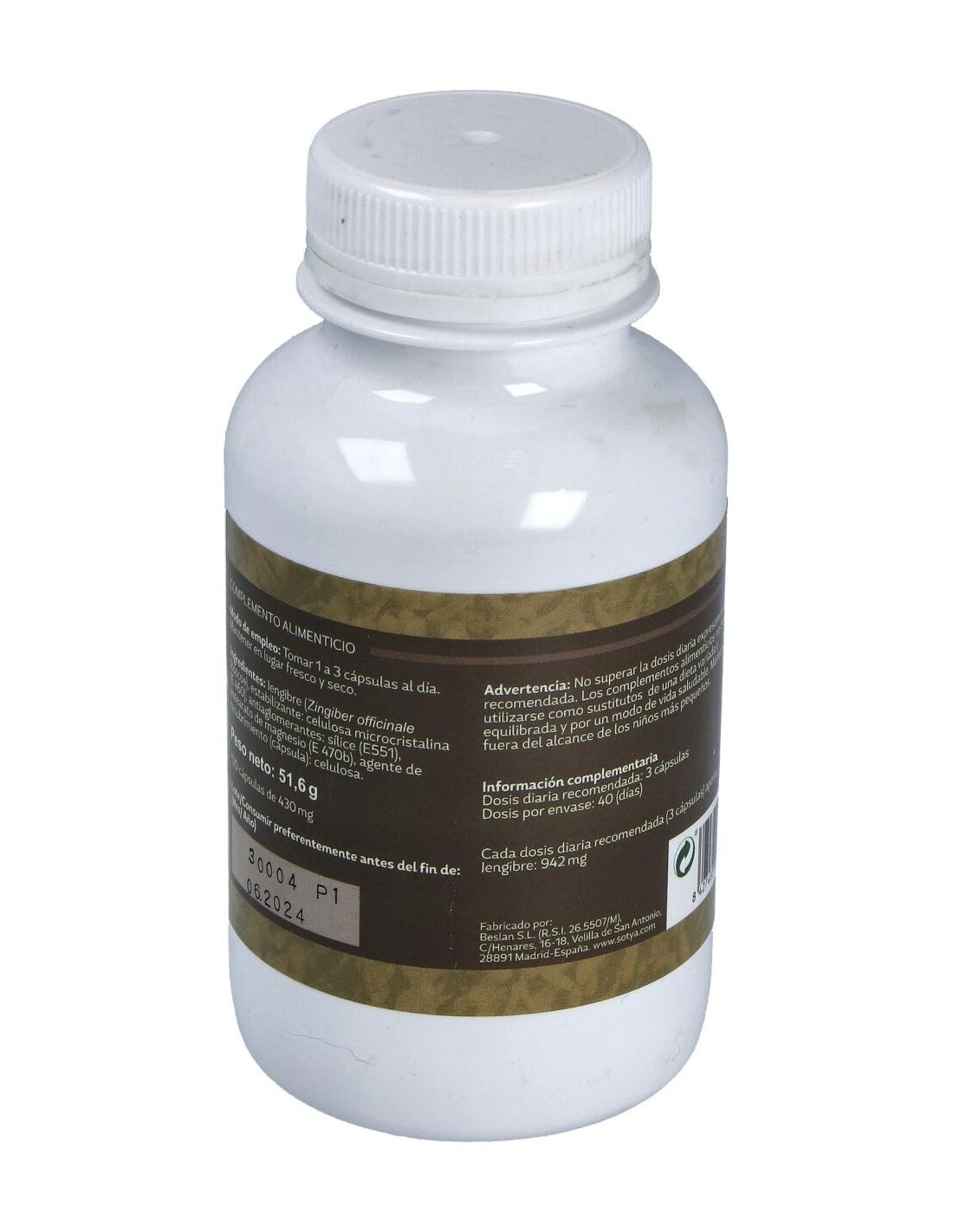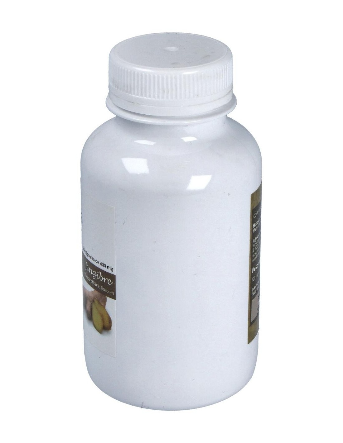 - Cada cápsula contiene 430 mg de jengibre, proporcionando una dosis constante y controlada en cada toma.