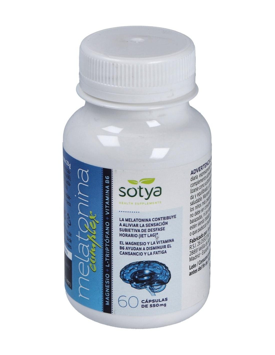 Melatonina Complex Magnesio+L-Triptofano+Vitamina B6 550Mg Cáps. 60U de Sotya
