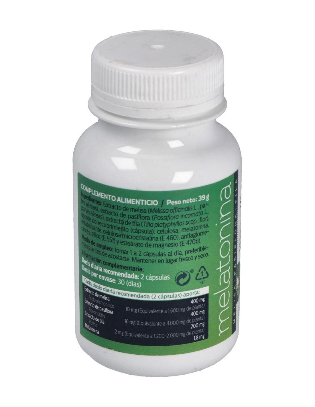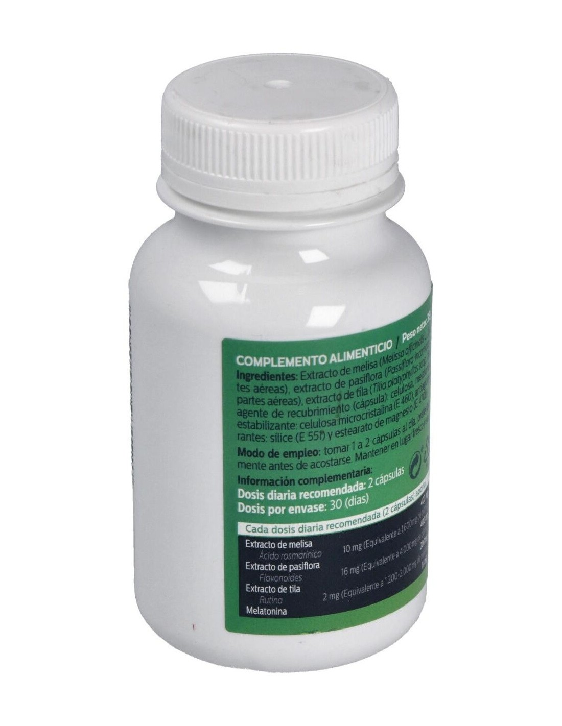 - Contiene melatonina junto con extractos de melisa, pasiflora y tila, que aportan propiedades relajantes de origen vegetal.