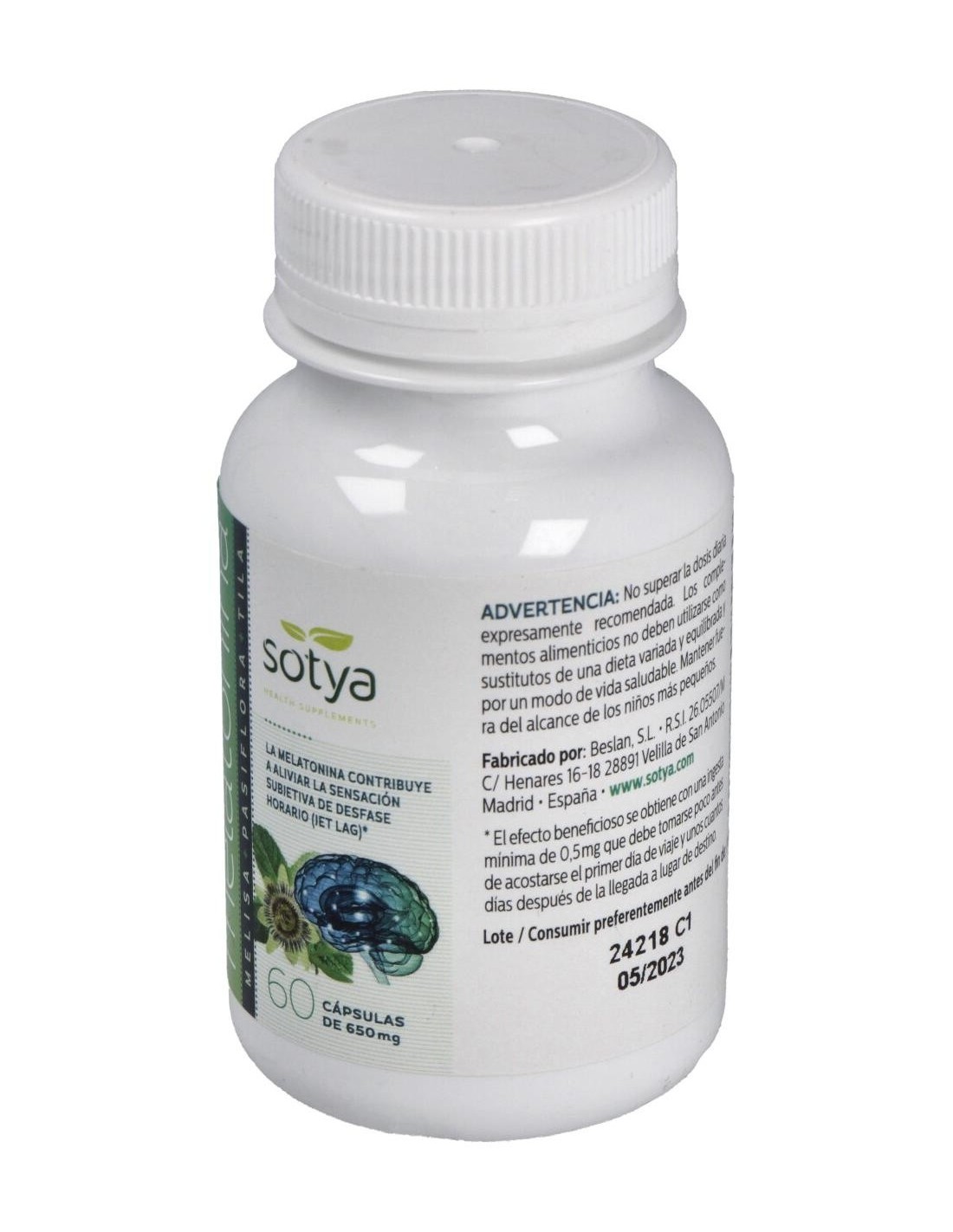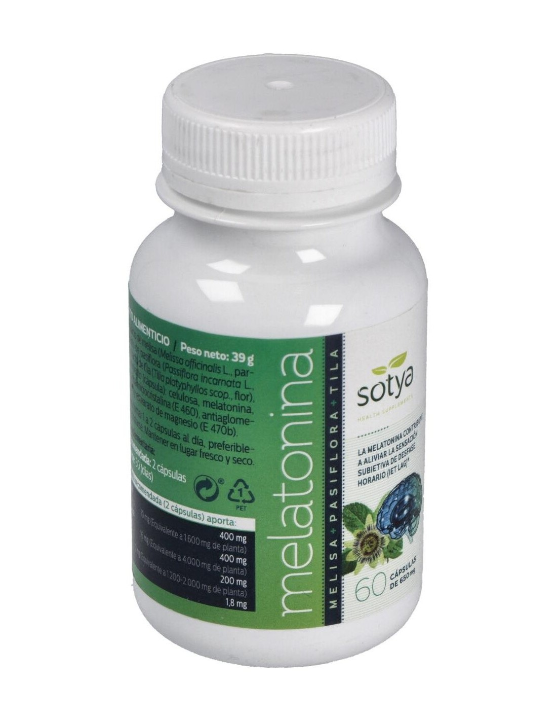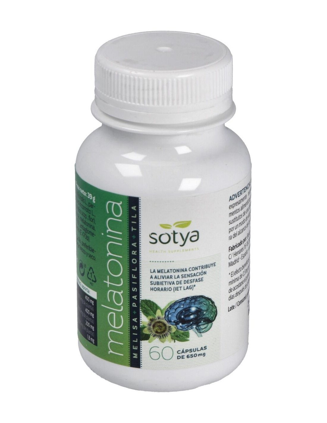 Melatonina Melisa+Pasiflora+Tila 650Mg Cáps.60U de Sotya ofrece una combinación equilibrada de componentes que pueden formar parte de un estilo de vida orientado al bienestar y la relajación.