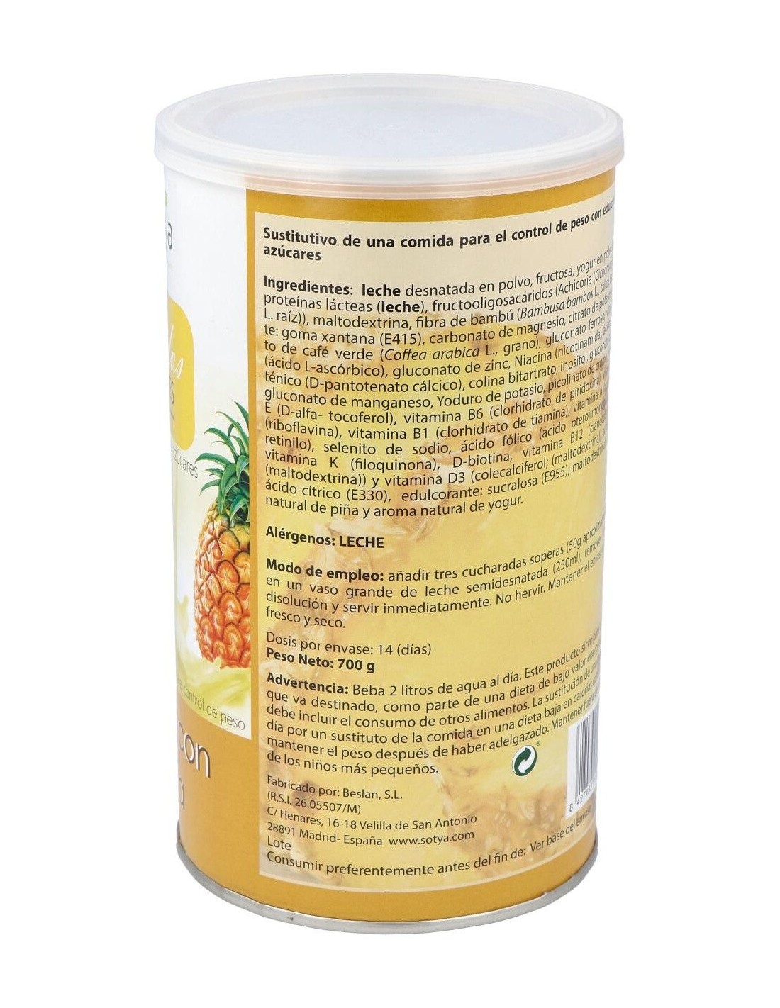 Batidos Saciantes 700G Polvo Sabor Yogur Con Piña de Sotya