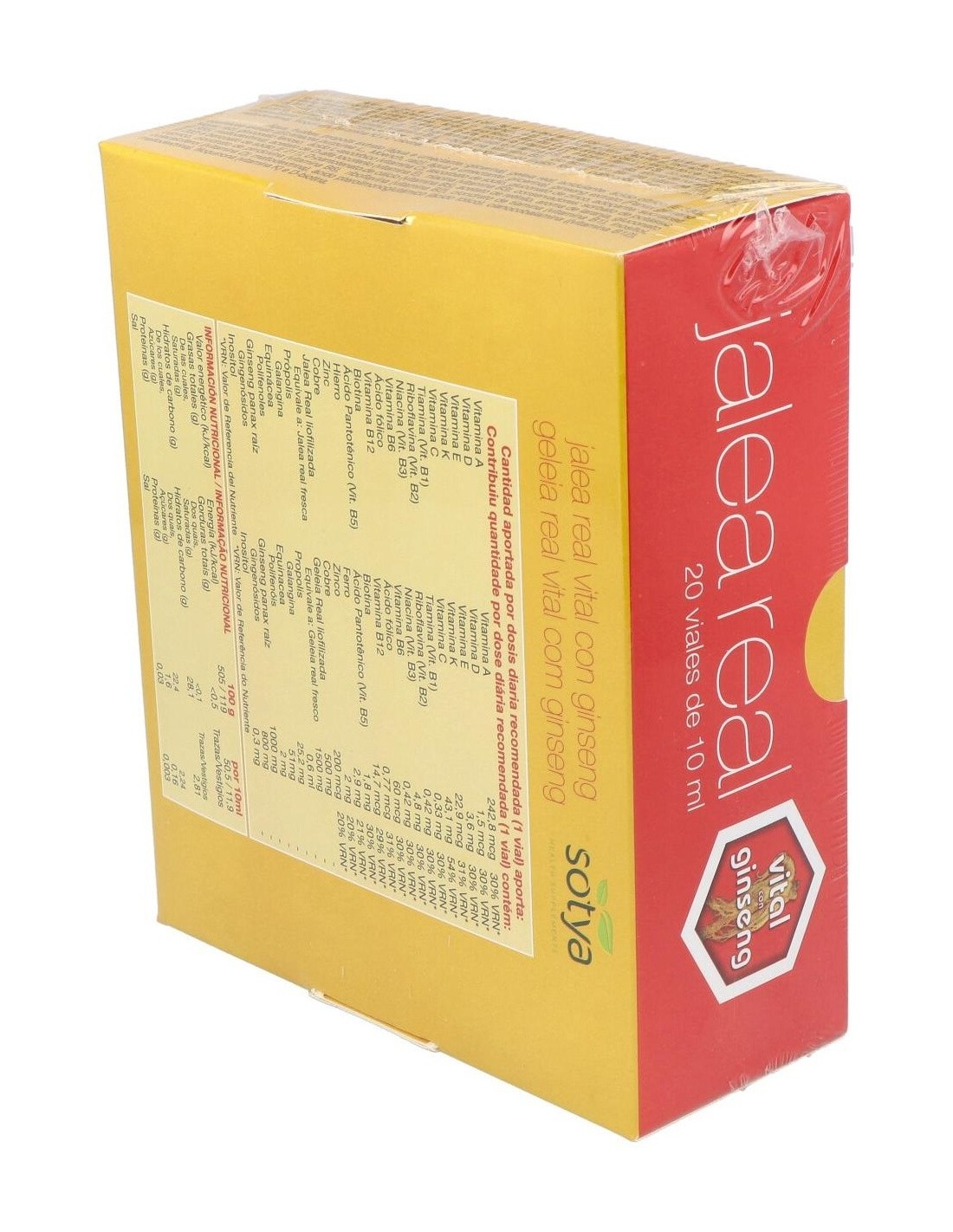 SOTYALa Jalea Real Vital con Ginseng 10ml viales vidrio 20U de Sotya es un suplemento natural para adultos que busca apoyar la vitalidad diaria mediante la combinación de jalea real y ginseng en presentaciones individuales.