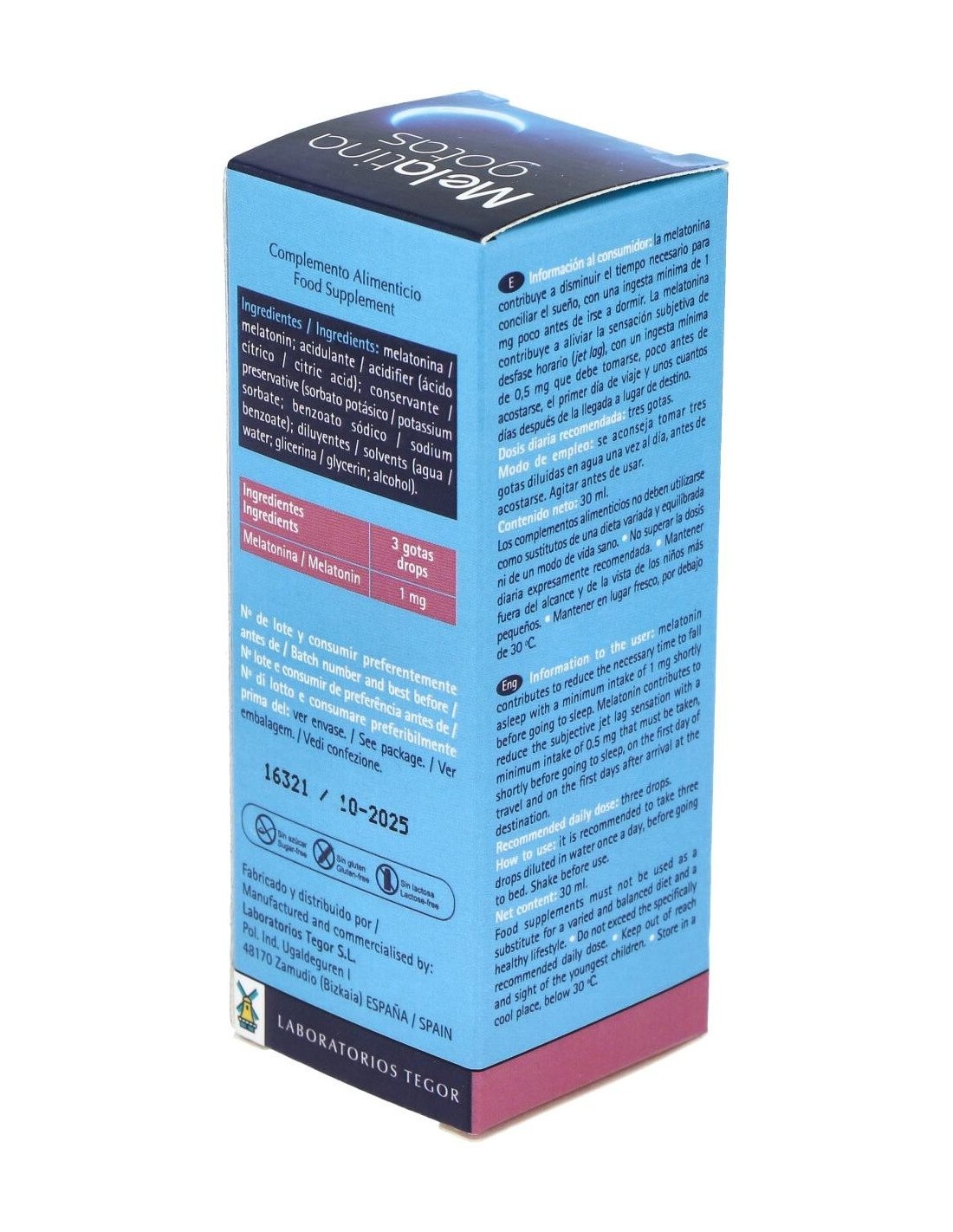 Melatina (Meladormo) 30Ml. de Tegor es un complemento diseñado para personas que buscan apoyar su bienestar durante los momentos de descanso. Su formulación está pensada para integrarse fácilmente en la rutina diaria, ofreciendo una opción práctica y cómoda.