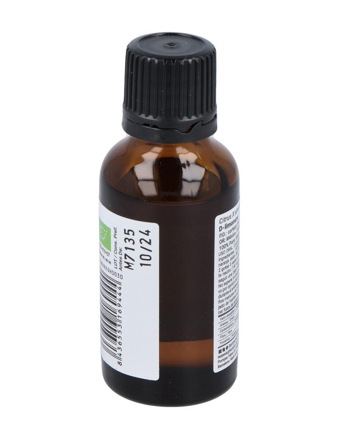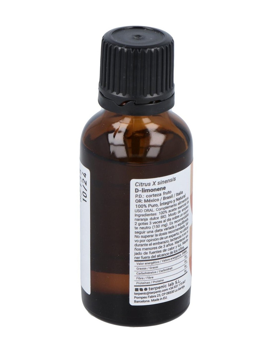 El aceite esencial de naranja de Terpenic se obtiene mediante procesos que preservan sus componentes naturales, asegurando un producto respetuoso con el medio ambiente. Su formato en vidrio oscuro protege el contenido de la luz, manteniendo la estabilidad y eficacia del aceite durante más tiempo.