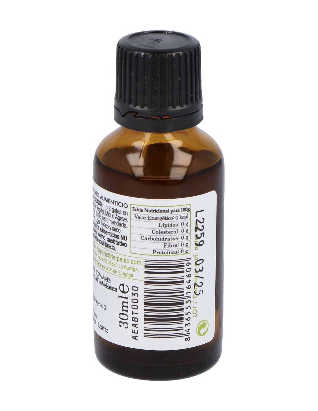 El aceite esencial de Árbol del Té de Terpenic se elabora a partir de hojas seleccionadas de plantas cultivadas bajo estándares ecológicos. Su envase de vidrio oscuro protege el contenido de la luz, manteniendo la calidad del aceite durante más tiempo. Es adecuado para quienes valoran ingredientes naturales en sus productos de cuidado diario.
