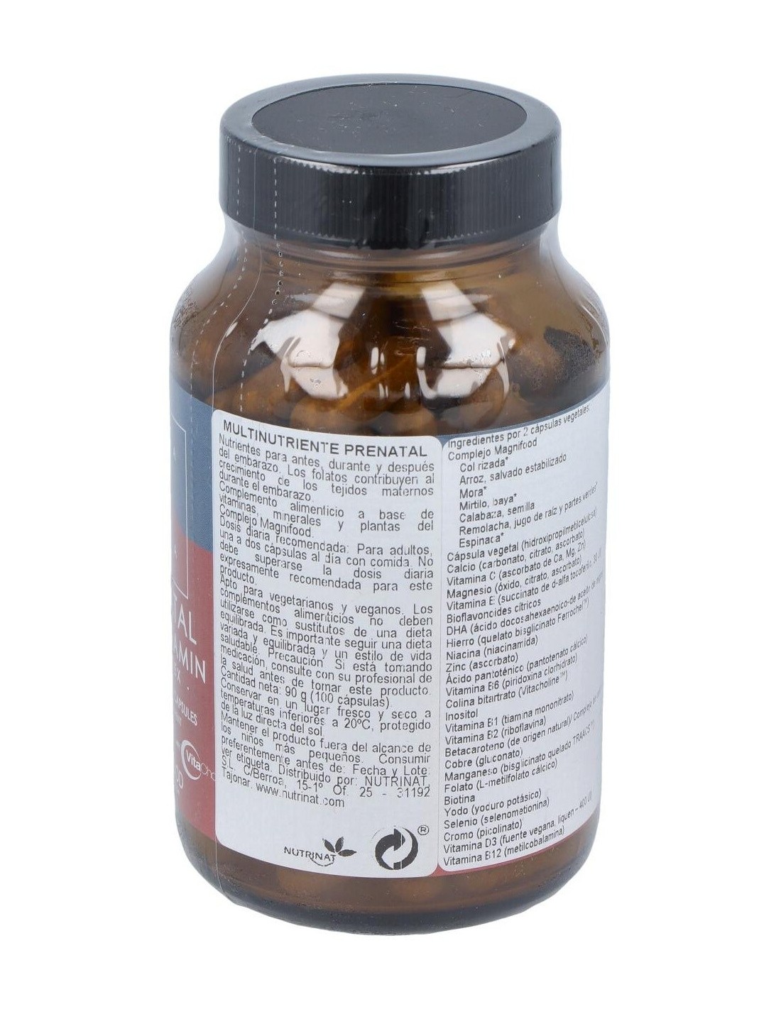 Complemento alimenticio a base de vitaminas, minerales y plantas del Complejo Magnifood, nutrientes útiles durante el embarazo. El ácido fólico contribuye al crecimiento de los tejidos maternos durante el embarazo. Apto para vegetarianos y veganos.
