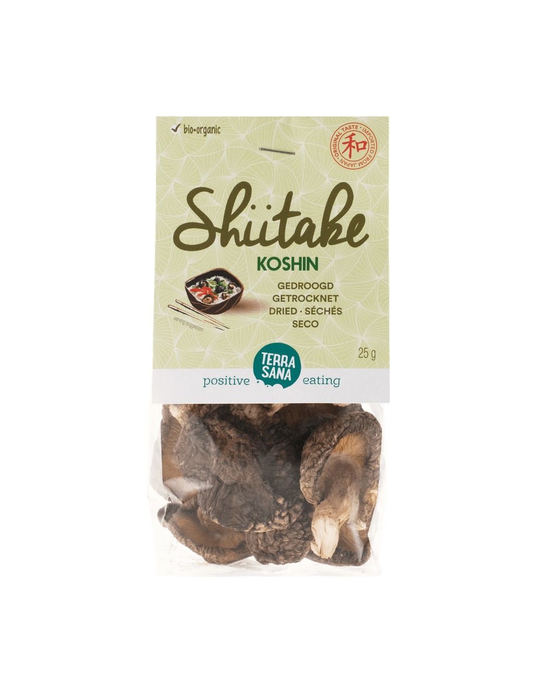 TERRASANAIngredientes:Setas shiitake secas* (Japón). (*) De agricultura ecológica.Valor nutricional por 100 gramos: