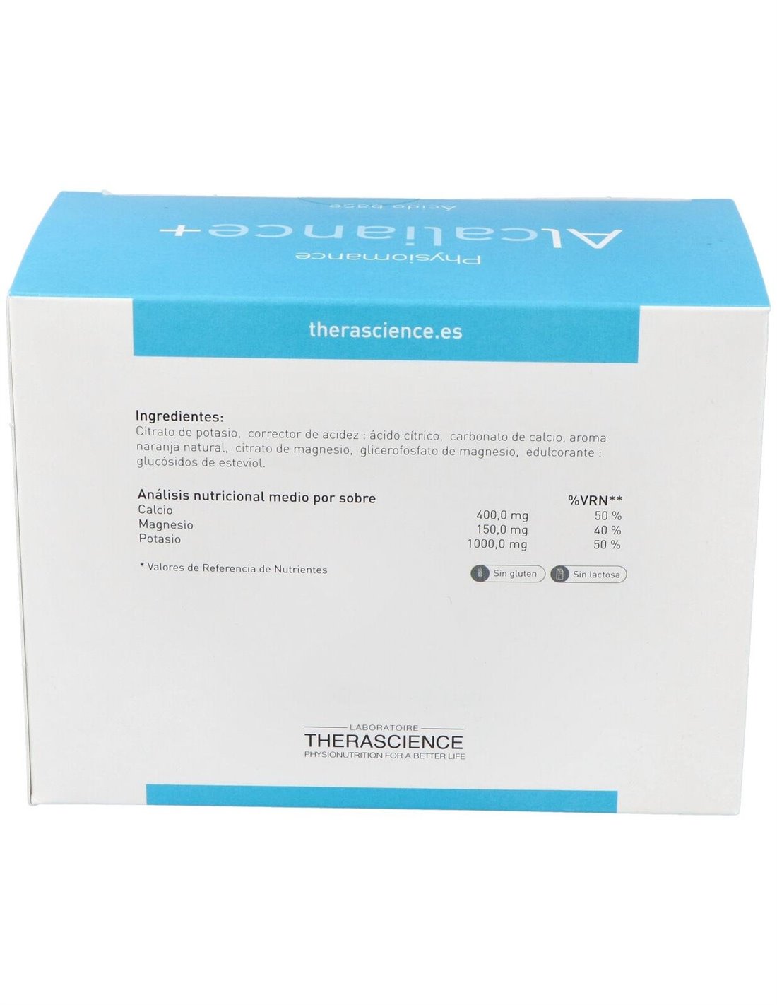 THERASCIENCEAporta una asociación de 3 minerales (potasio, calcio y magnesio) para mantener un equilibrio ácido-base con una formulación de mezcla de carbonatos y citratos para una mejora alcalinización del organismo y mejor conservación de la estructura ósea. Aporta una asociación de 3 minerales (potasio, calcio y magnesio) para mantener un equilibrio ácido-base con una formulación de mezcla de carbonatos y citratos para una mejora alcalinización del organismo y mejor conservación de la estructura ósea.