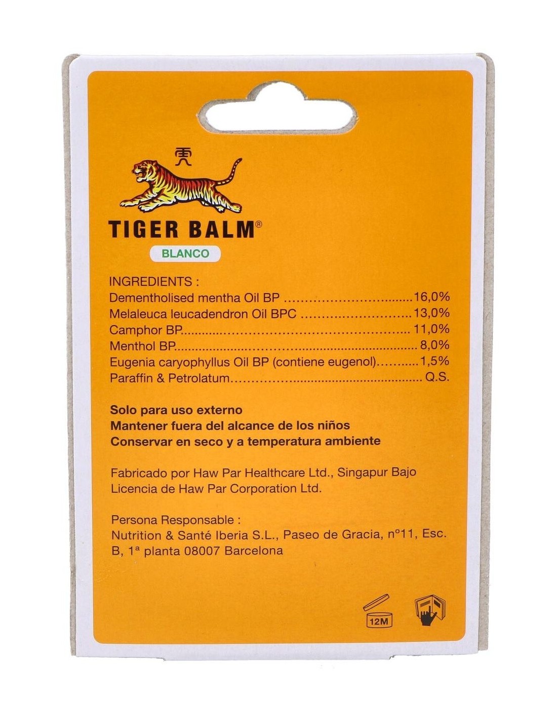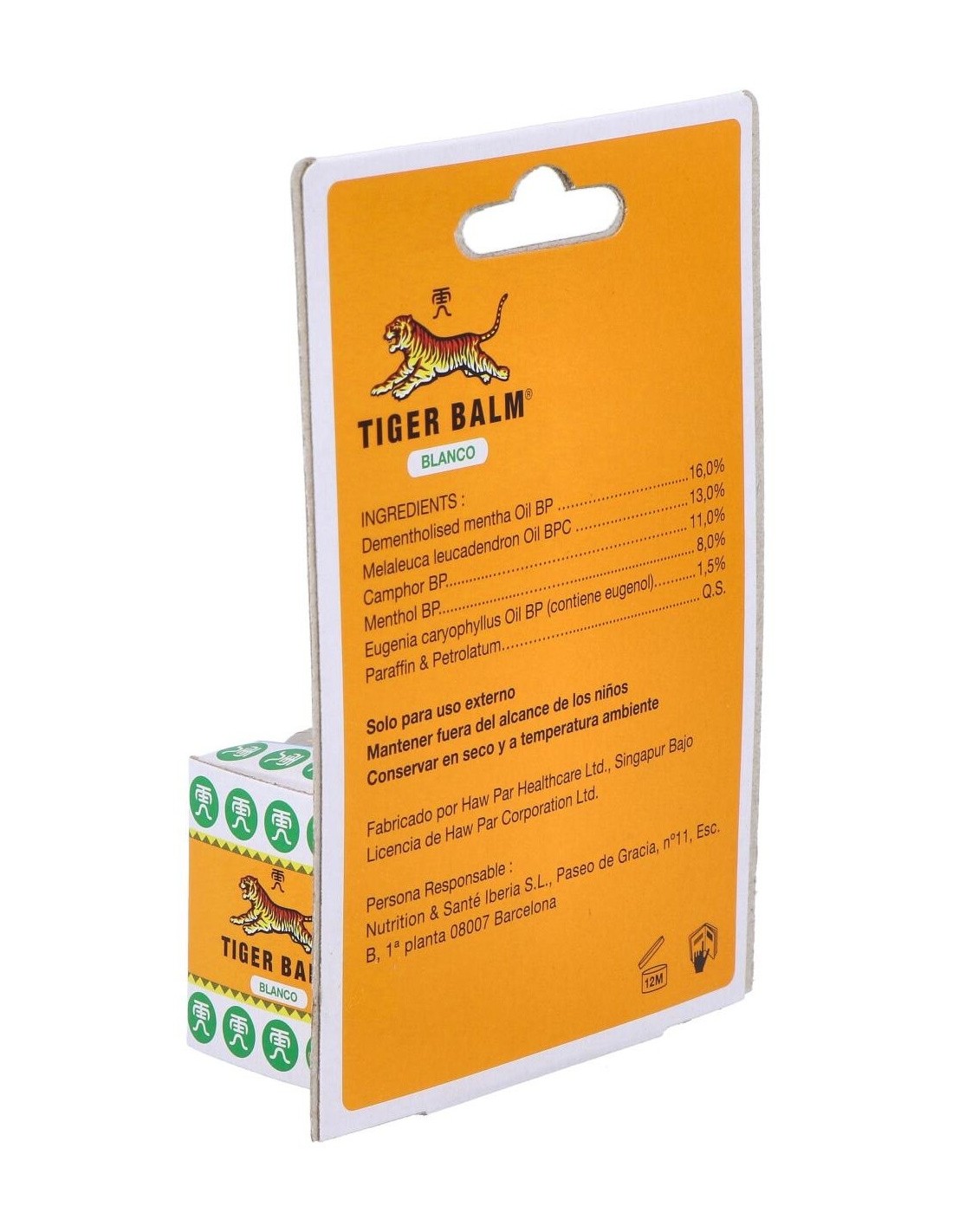 TIGER BALM®El Bálsamo Del Tigre Blanco de Tiger Balm® es un ungüento para personas que buscan alivio temporal en músculos y articulaciones, formulado con ingredientes naturales que proporcionan una sensación refrescante y calmante.