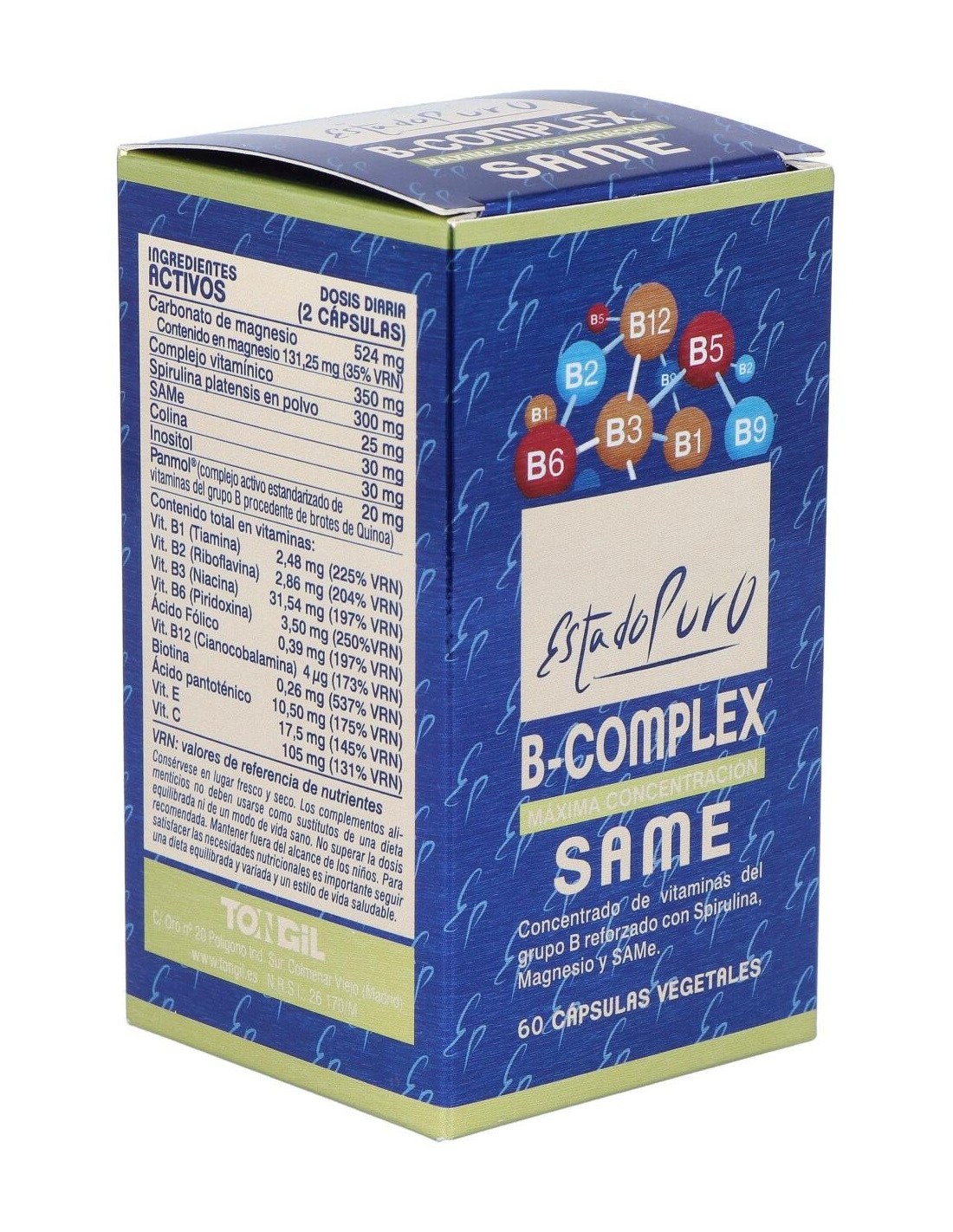 B Complex-Same 60Cap. Estado Puro de Tongil ofrece una opción para quienes buscan complementar su alimentación con vitaminas del complejo B, contribuyendo a un soporte nutricional constante.