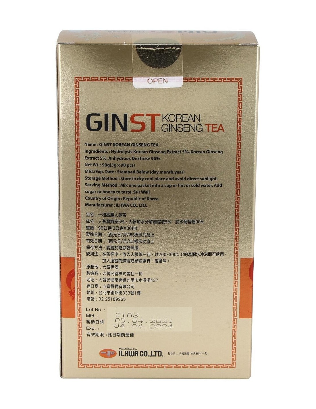 Korean Ginseng Tea Il Hwa (Ginst15) 30Sb de Tongil
