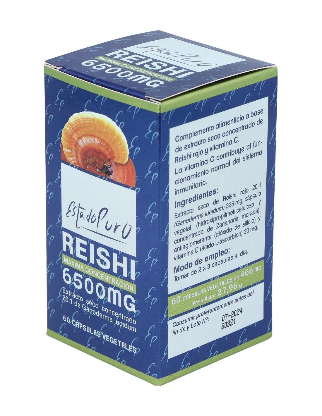 - Cada cápsula contiene 6500 mg de extracto puro de Reishi, proporcionando una concentración constante en cada dosis.