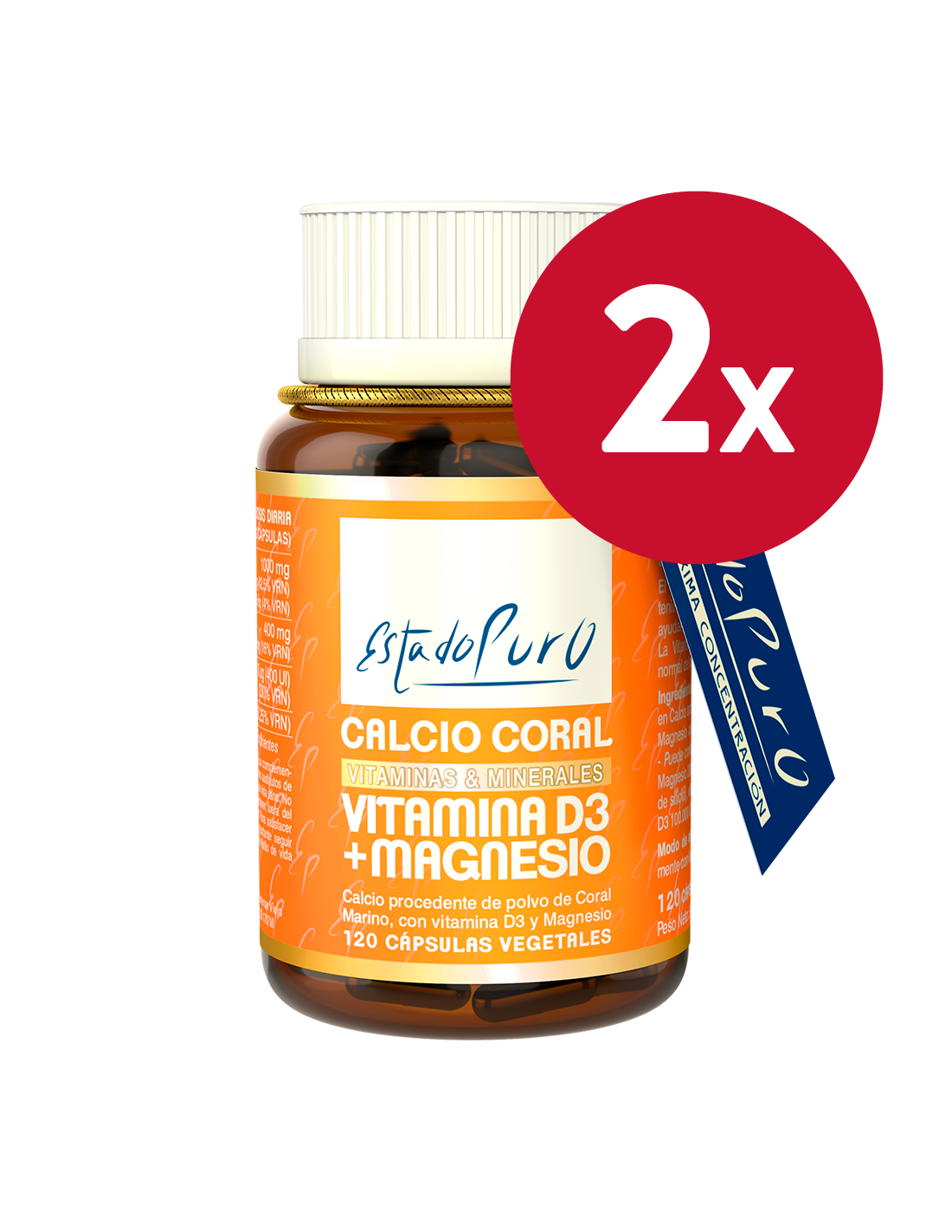 Pack 2 Unidades Calcio Coral+Vit D3+Mg 120Cap. Estado Puro d