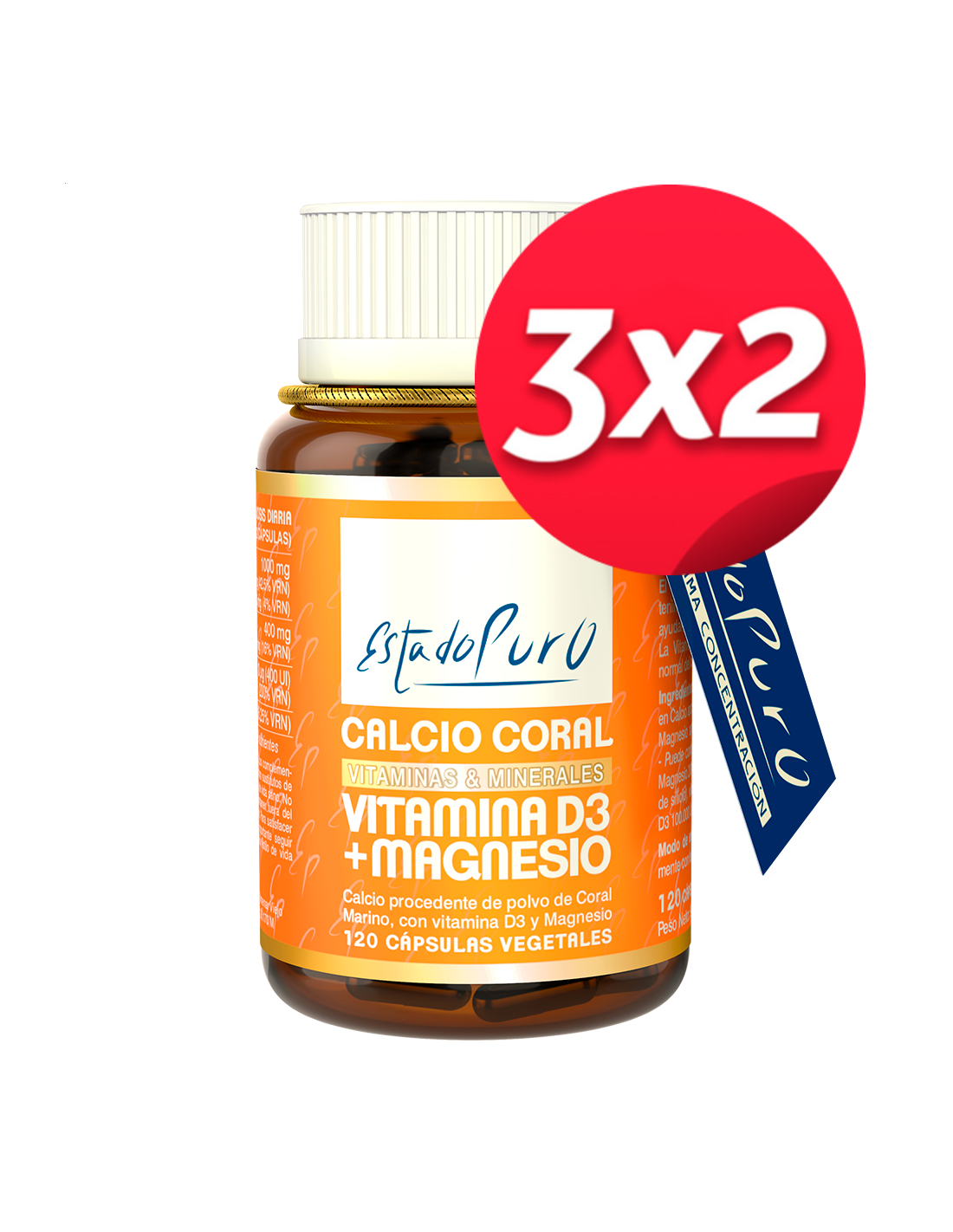Pack 3X2 Calcio Coral+Vit D3+Mg 120Cap. Estado Puro de Tongi