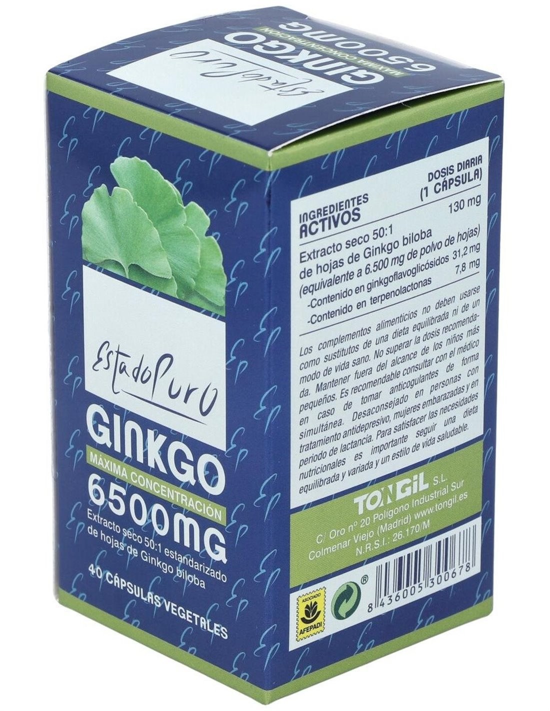 - Cada cápsula contiene 6500 mg de extracto puro de Ginkgo biloba, facilitando una ingesta controlada y constante.