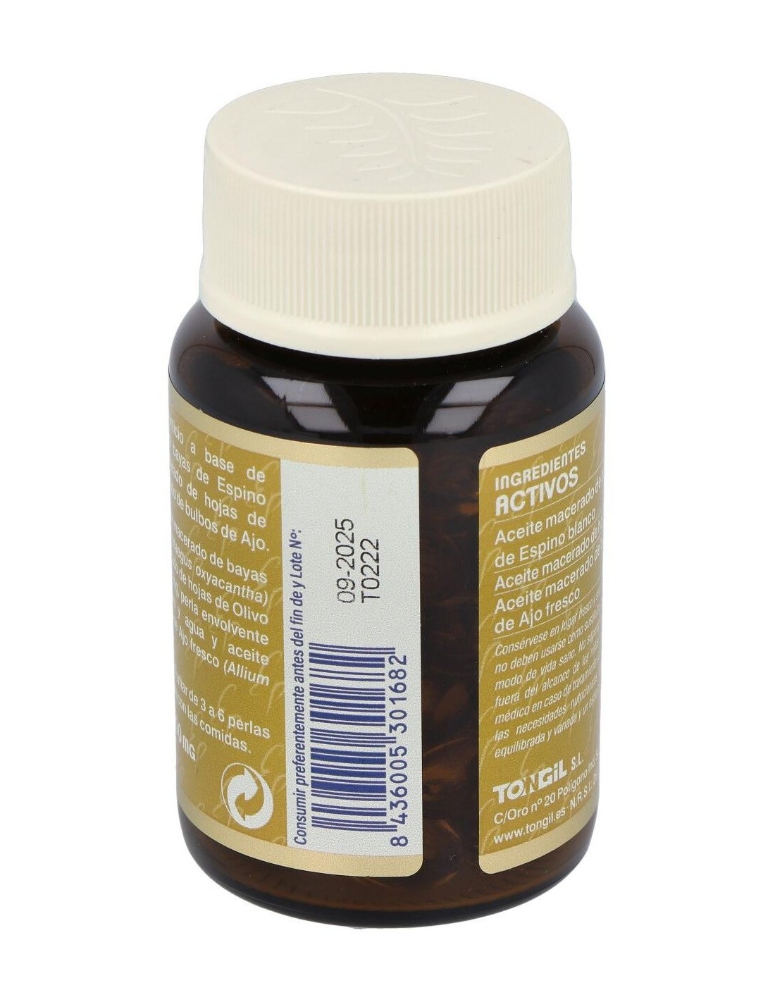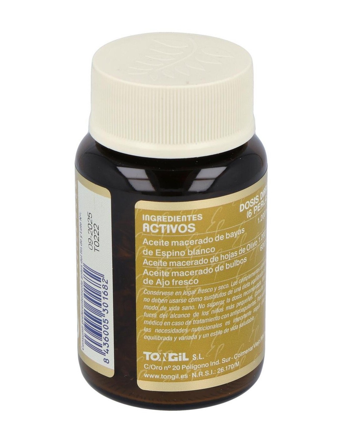 TONGILComplemento alimenticio a base de aceite macerado de bayas de Espino blanco, aceite macerado de hojas de Olivo y aceite macerado de bulbos de Ajo.
