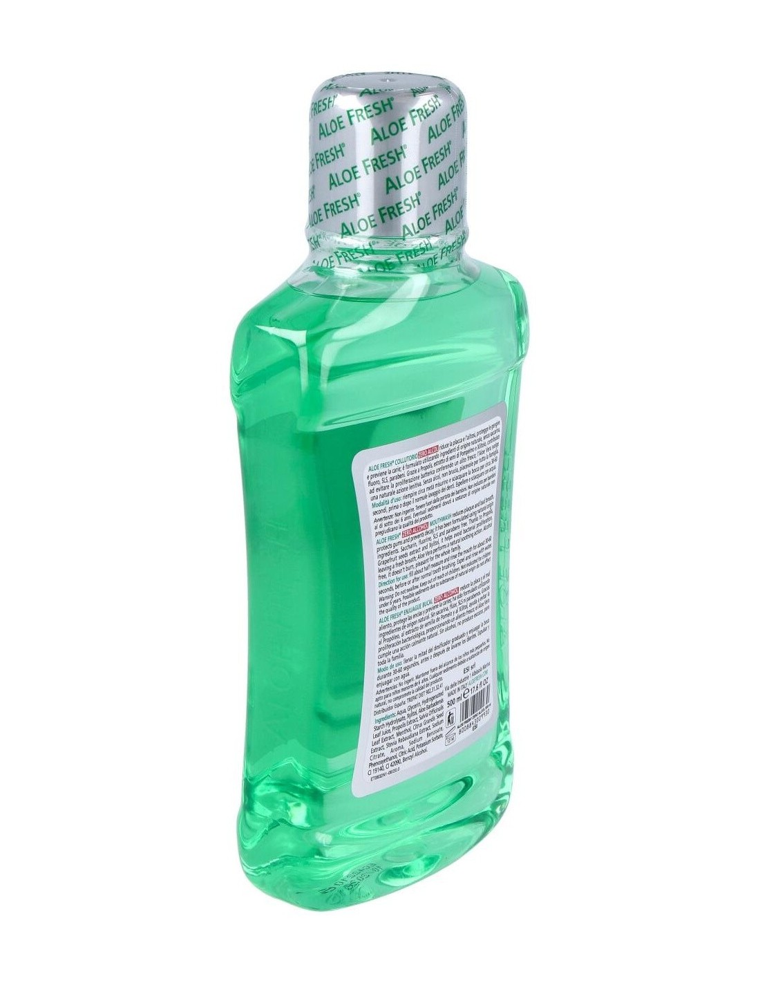 Aloe Fresh Colutorio de ESI esta especialmente formulado para la hiegiene bucal, con un sabor agradable que permanece después de su uso, refrescando el aliente. No contiene alcohol ni sacarosa. Como consecuencia del uso de este producto se pueden contrarrestar problemas tan comunes como caries, placa, sarro, halitosis, problemas en las encías, decoloraciones dentales... Propiedades de los principios activos: