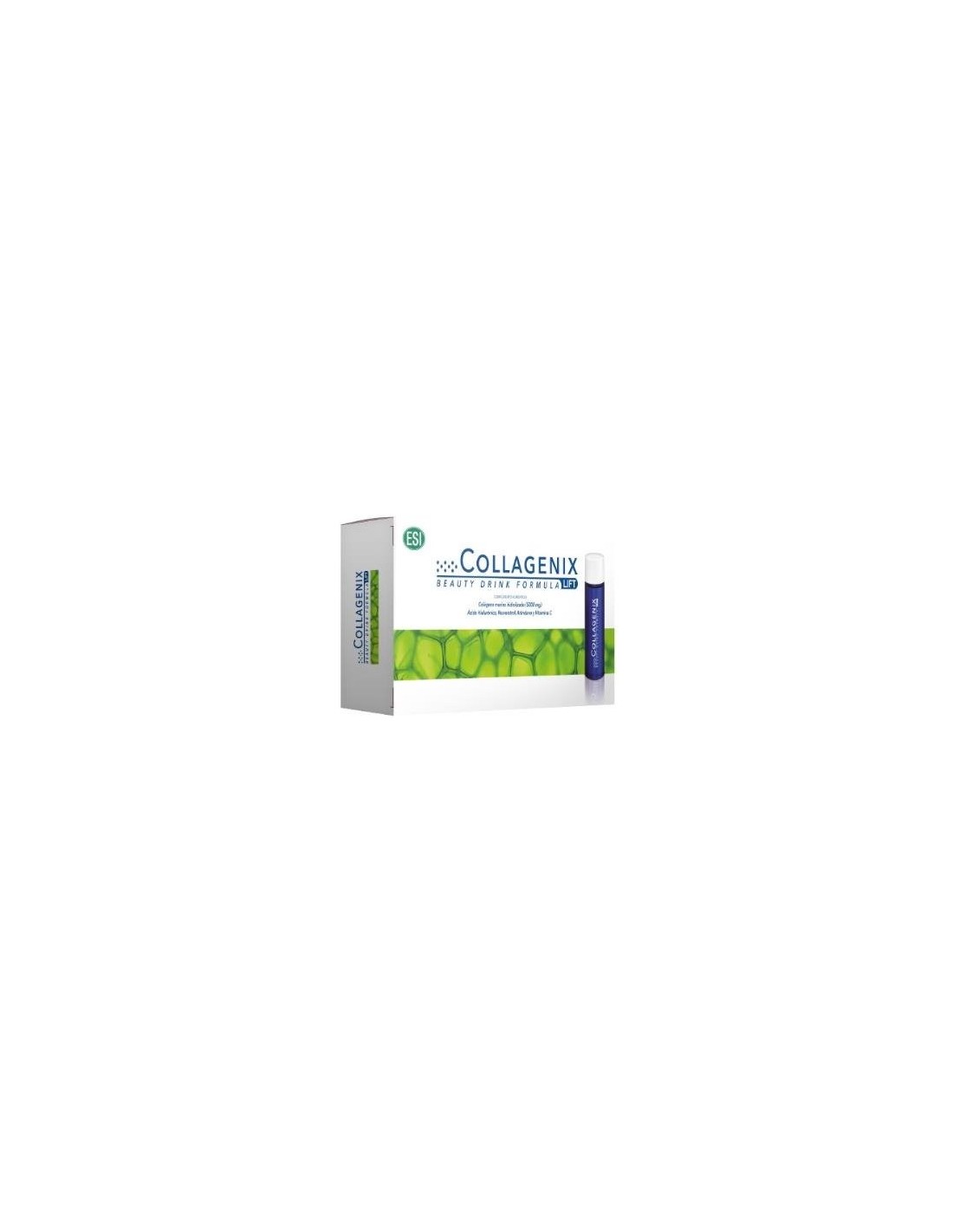 TREPATDIET-ESICollagenix es un complemento alimenticio formulado para sumar las propiedades del colágeno Marino tipo I, ácido hialurónico y el resveratrol, con otro