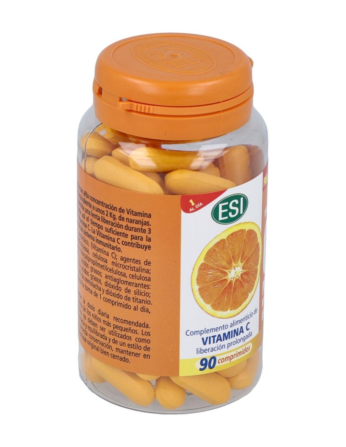 ESI Vitamina C Pura Retard 1000mg 90comp es un complemento alimenticio de vitamina C de liberación prolongada, que actúa durante 3 horas para que el organismo pueda absorber la cantidad necesaria. Contiene una alta dosificación de vitamina C, equivalente de 2 kg de naranjas, y está indicada para adultos que tengan déficit de esta vitamina.