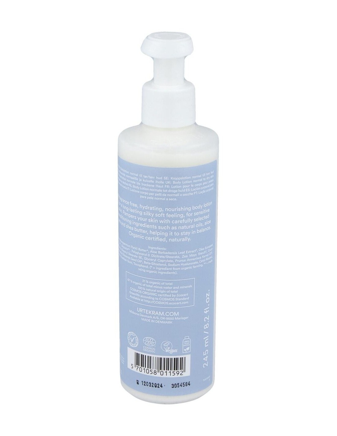 Fragance Free Loción Corporal 245Ml. Eco Vegan de Urtekram ofrece una hidratación equilibrada y un cuidado delicado, adecuado para quienes buscan una opción sin fragancia y con certificación ecológica.