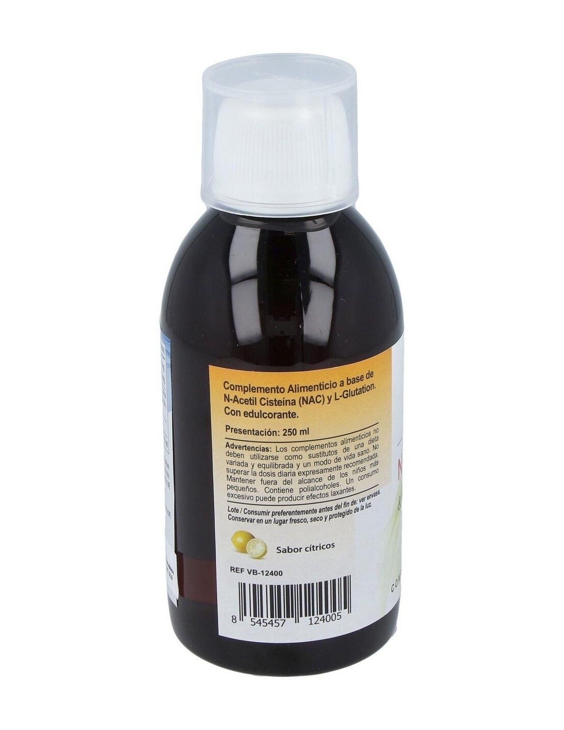 Fórmula a base de N-Acetilcisteina (NAC) y L-glutation, nutrientes que apoyan la normal función hepática. Sabor citricos.