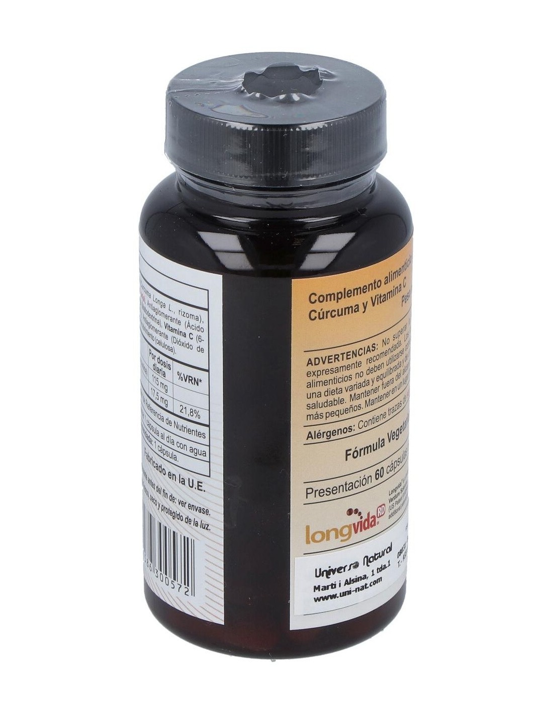 El producto está elaborado con ingredientes seleccionados para mantener la estabilidad y calidad del extracto de cúrcuma. Su diseño en cápsulas facilita su consumo en cualquier momento del día, adaptándose a diferentes estilos de vida.