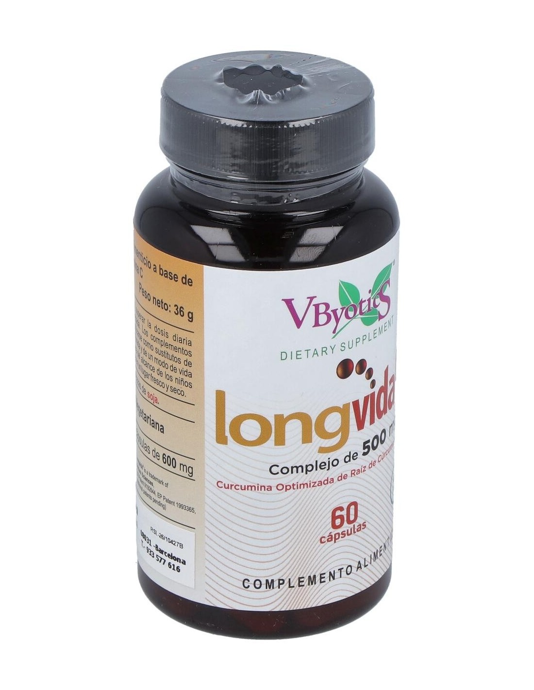 VBYOTICSLongvida Curcuma 60Cap. de Vbyotics es un suplemento natural para personas que buscan apoyo en su bienestar diario, formulado con curcumina de liberación prolongada para mejorar su absorción y eficacia.
