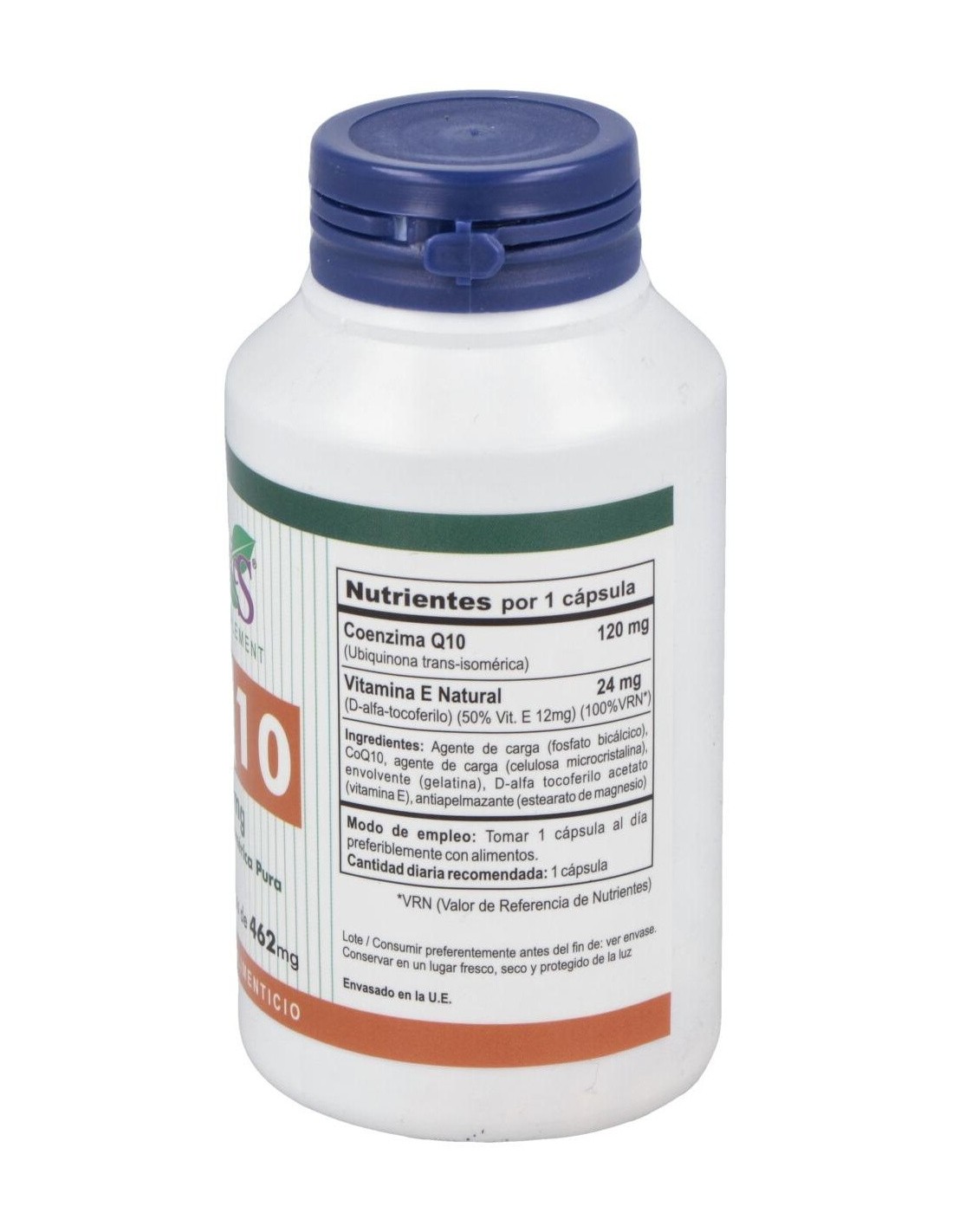 - Cada cápsula contiene 120 mg de coenzima Q10, facilitando una ingesta controlada y constante.