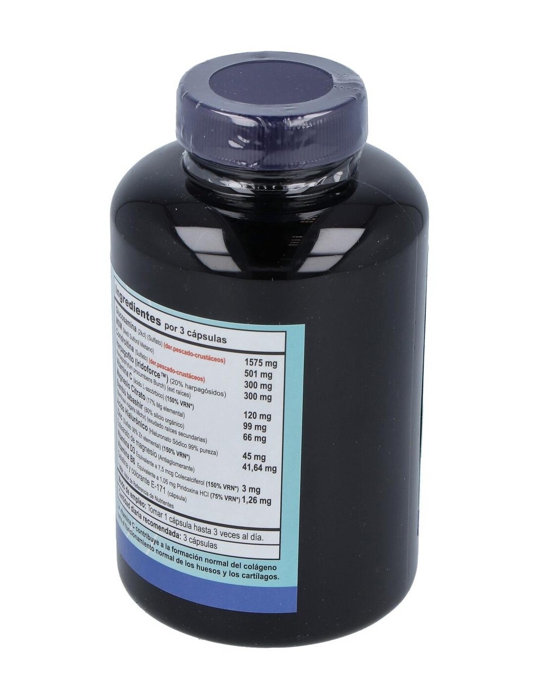Otros ingredientes:Estearato de magnesio (antiaglomerante), gelatina y colorante E-171 (cápsula). Modo de empleo:Tomar 3 cápsulas al día repartidas en varias tomas. Presentación:Bote de 90 cápsulas.