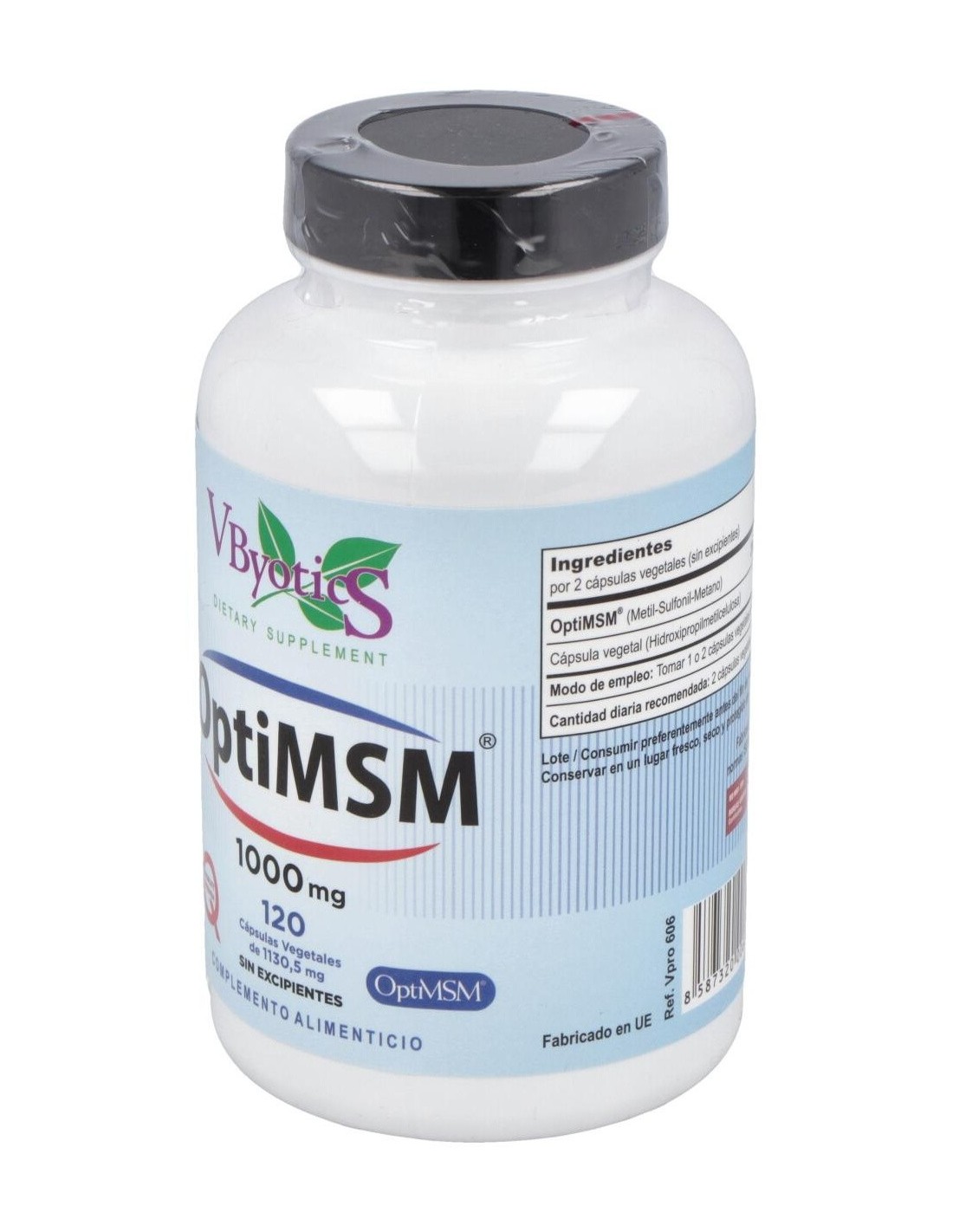 VBYOTICSEl Opti-Msm 1000Mg 120Comp. de Vbyotics es un suplemento para personas activas que busca apoyar la salud articular y muscular mediante una fórmula concentrada de MSM.