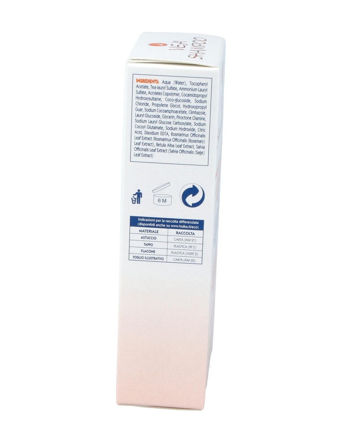 INCI: Aqua/Water, Tocopheryl Acetate, Tea-lauryl sulfate, Ammonium lauryl sulfate, Acrylates copolymer, Cocoamido propyl hydroxy sultaine, Cocoglucoside, Sodium chloride, Hydroxypropyl guar, Sodium cocoyl hydrolyzed wheat protein, Propylene glycol, Piroctone olamine, Zinc pyrithione, Sodium hydroxide, Citric acid, Disodium EDTA, Sulfur, Betula alba extract, Rosmarinus officinalis extract, Salvia officinalis extract