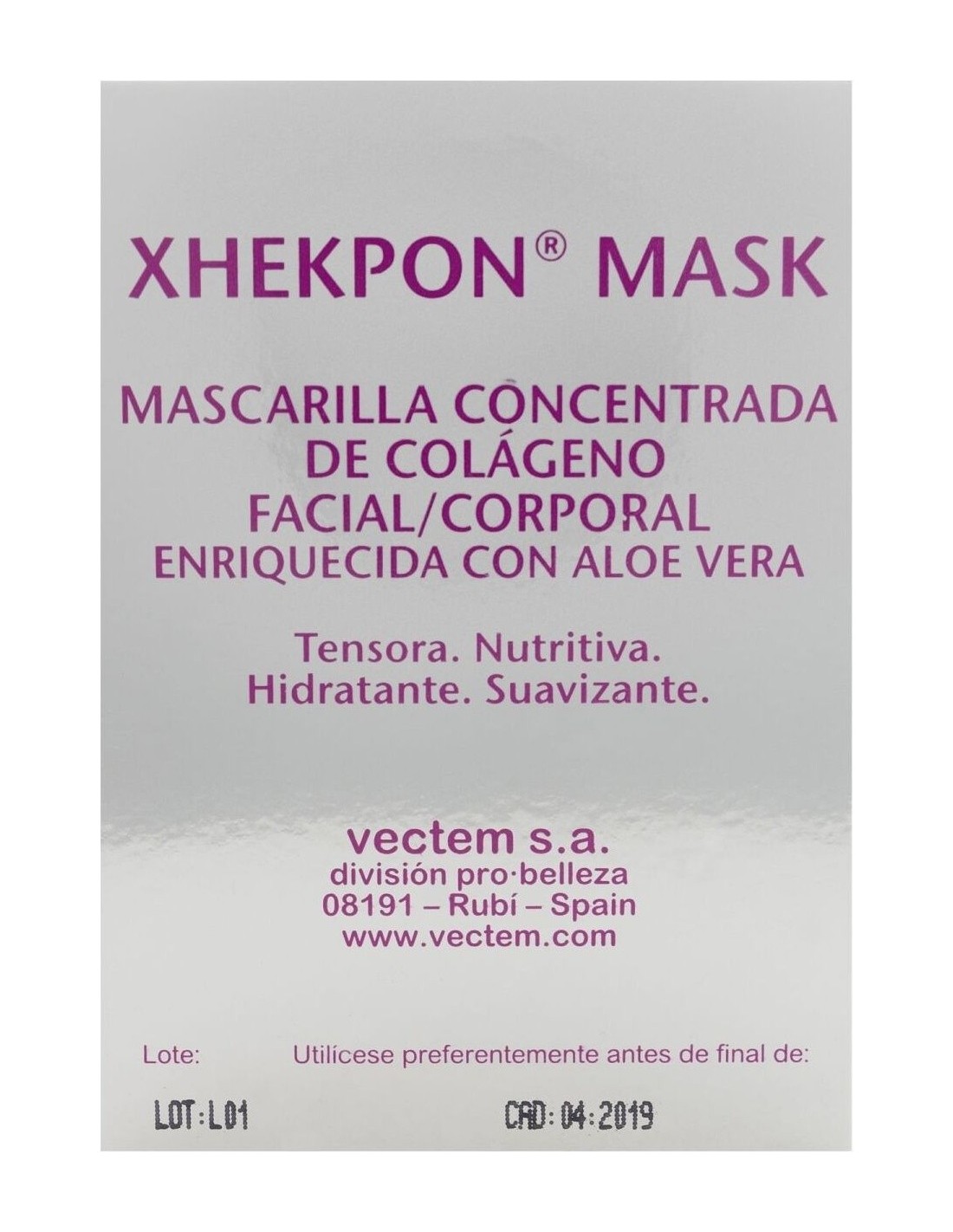 Xhekpon Mask contiene colágeno hidrolizado, que permite penetrar hasta las capas más profundas de la piel y actuar de manera más rápida. Su elevada concentración de colágeno se combina con el aloe vera, cuyas propiedades consiguen suavizar la piel, no engrasarla ni resecarla. Además, proporciona una piel lisa, relajada y rejuvenecida.