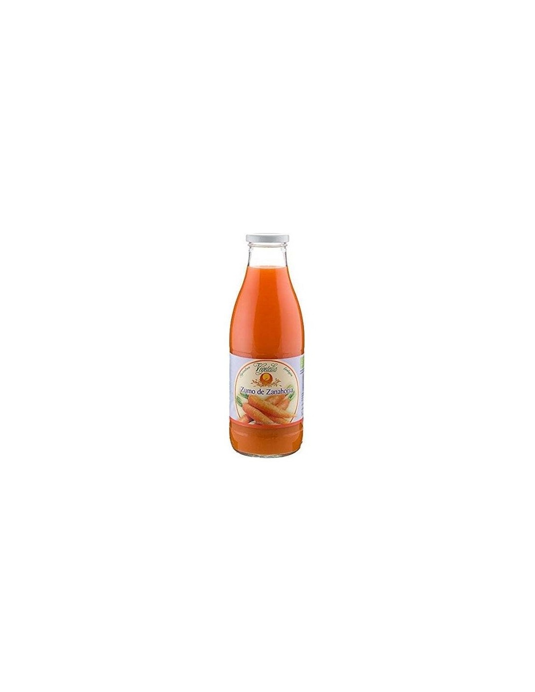 Zumo de zanahoria elaborado con zanahorias ecológicas, parcialmente a partir de concentrado. Su contenido de vitamina C ayuda a que tu cuerpo reaccione mejor contra las heridas. El contenido de fibra que contiene la zanahoria ayuda a digerir mejor los alimentos. Ayuda a Mejora la vista y a proteger los huesos. Su contenido de vitamina K, potasio y calcio hacen a las zanahorias un aliado para mantener la salud ósea. No sólo incentiva su crecimiento en los niños, sino que también colabora en la curación en caso de fracturas. Al ser rico en antioxidantes el zumo de zanahoria protege tu cuerpo de enfermedades, especialmente durante la época invernal. Ayuda a eliminar toxinas, principalmente si lo consumes en ayunas. Su contenido de vitaminas del complejo B ayudan a la descomposición de las proteínas, grasas y glucosa, además de colaborar en la construcción de los músculos, aumentando el metabolismo. Los betacarotenos y la vitamina A al ingresar al organismo que contiene la zanahoria reducen la degeneración de las células. Este proceso tiene relación directa con el colágeno que mantiene la piel elástica, reduciendo los signos visibles de envejecimiento.