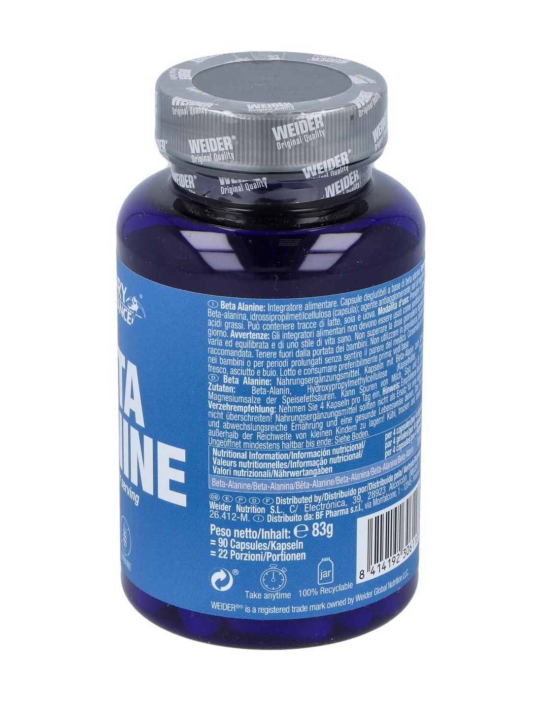 Complemento alimenticio compuesto por Beta-alanina, aminoácido no esencial, único por la especial posición que ocupa el grupo amino, efectivo como suplemento ergogénico, aumentando así la potencia muscular y con marcado efecto antoxidante. La beta-alanina es un aminoácido implicado directamente con el aumento de la carnosina, dipéptido que se encuentra en la musculatura y cerebro, cuya liberación en el organismo se traduce en un aumento de la resistencia, una mejora en la contracción muscular y un retraso de la fatiga. Previene la hiper acidez muscular, inhibiendo la producción de ácido láctico, aumentando así la capacidad de rendimiento. Buen regulador del calcio, induce una rápida liberación del calcio, mejorando la contracción muscular, y aumentando el tiempo de entrenamiento. Reduce el estrés oxidativo, consiguiendo que el rendimiento sea mayor y acelerando la recuperación muscular.