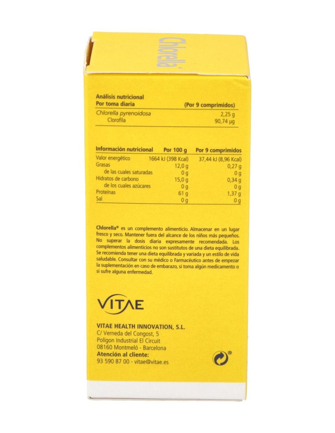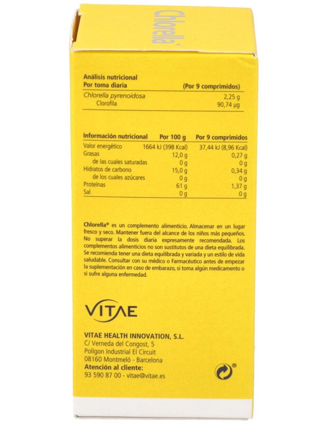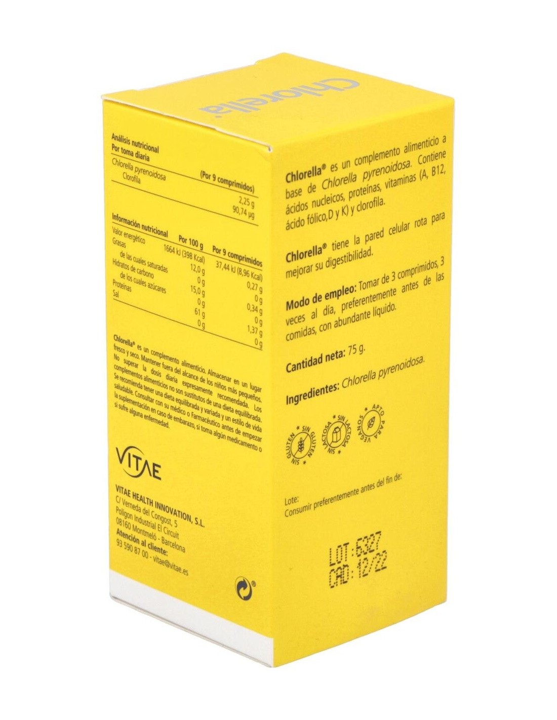 La Chlorella es una alga unicelular de agua dulce existente en la Tierra desde hace más de tres mil millones de años. El nombre de Chlorella proviene del griego chlor: color verde-amarillento y del latín ella: sufijo relativo a su pequeño tamaño. Los primeros estudios sobre esta alga fueron publicados a finales del siglo XIX. El biólogo holandés Néerlandais Beijerinck en 1890 fue el primer científico en identificarla y clasificarla. Contiene clorofila, proteínas, ácidos nucleicos y vitaminas, como la vitamina A que contribuye al metabolismo normal del hierro y la vitamina B12 que ayuda a disminuir el cansancio y la fatiga. La Chlorella pyrenoidosa de Chlorella presenta la pared celular rota. La Chlorella pyrenoidosa ayuda a excretar compuestos tóxicos del organismo, y ayuda a mantener la vitalidad y la actividad del organismo. Composición por 9 comprimidos:1,8 grs de chlorella pyrenoidosa. Modo de empleo:Tomar 3 comprimidos 3 veces al día, preferentemente con las comidas. Presentación:Envase de 300 comprimidos.