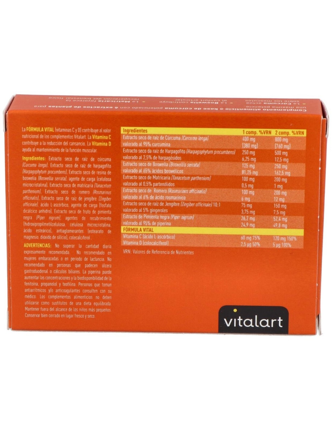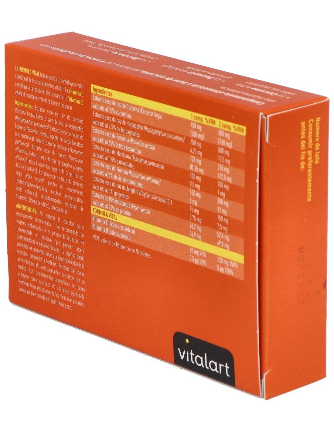 VITALART CÚRCUMA COMPLEX es un complemento coadyuvante en casos de dolor y molestias musculares y articulares. Actúa mediante una selección de extractos de plantas que modulan la respuesta inflamatoria a distintos niveles, tanto en procesos de inflamación aguda como crónica.