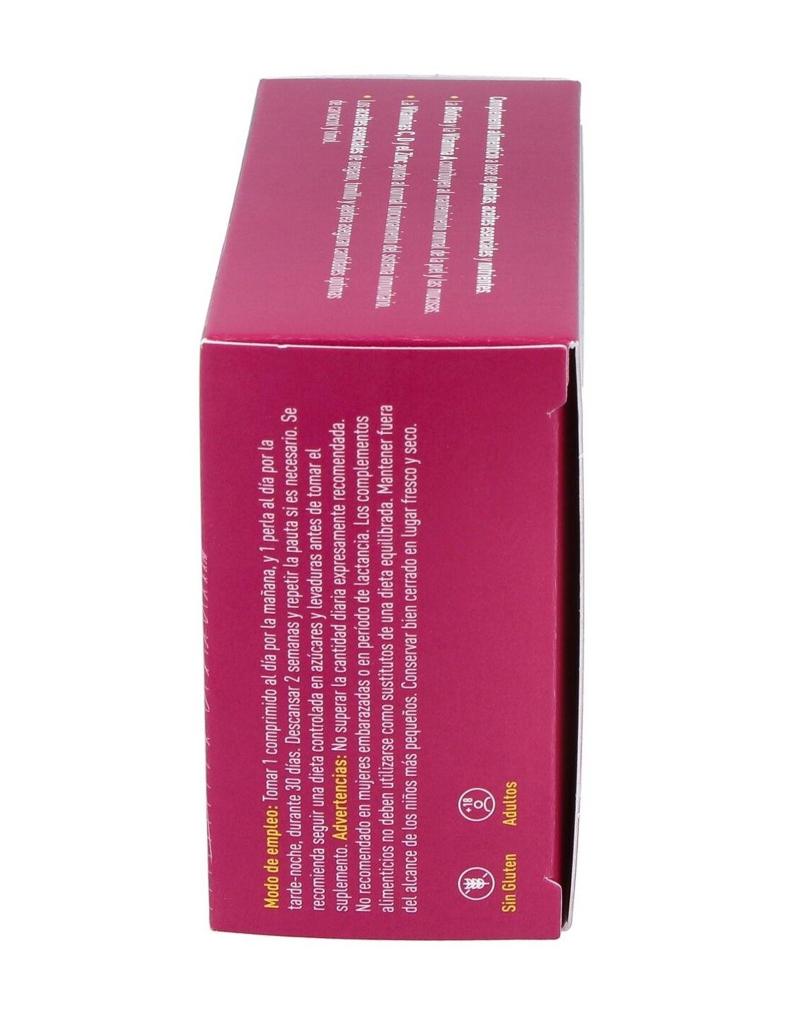 tarde-noche, durante 30 días. Descansar 2 semanas y repetir la pauta si es necesario. Serecomienda seguir una dieta controlada en azúcares y levaduras antes de tomar el suplemento.