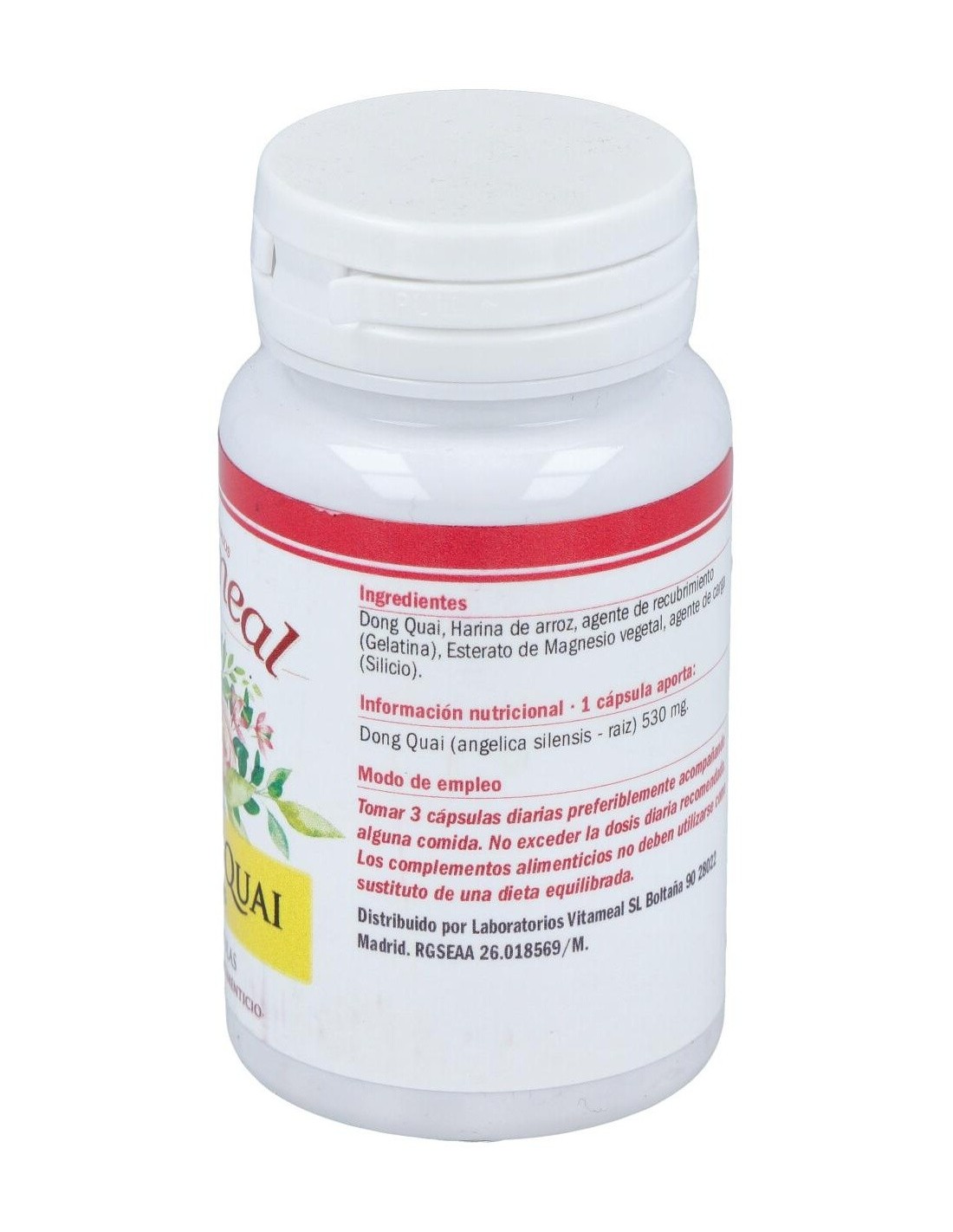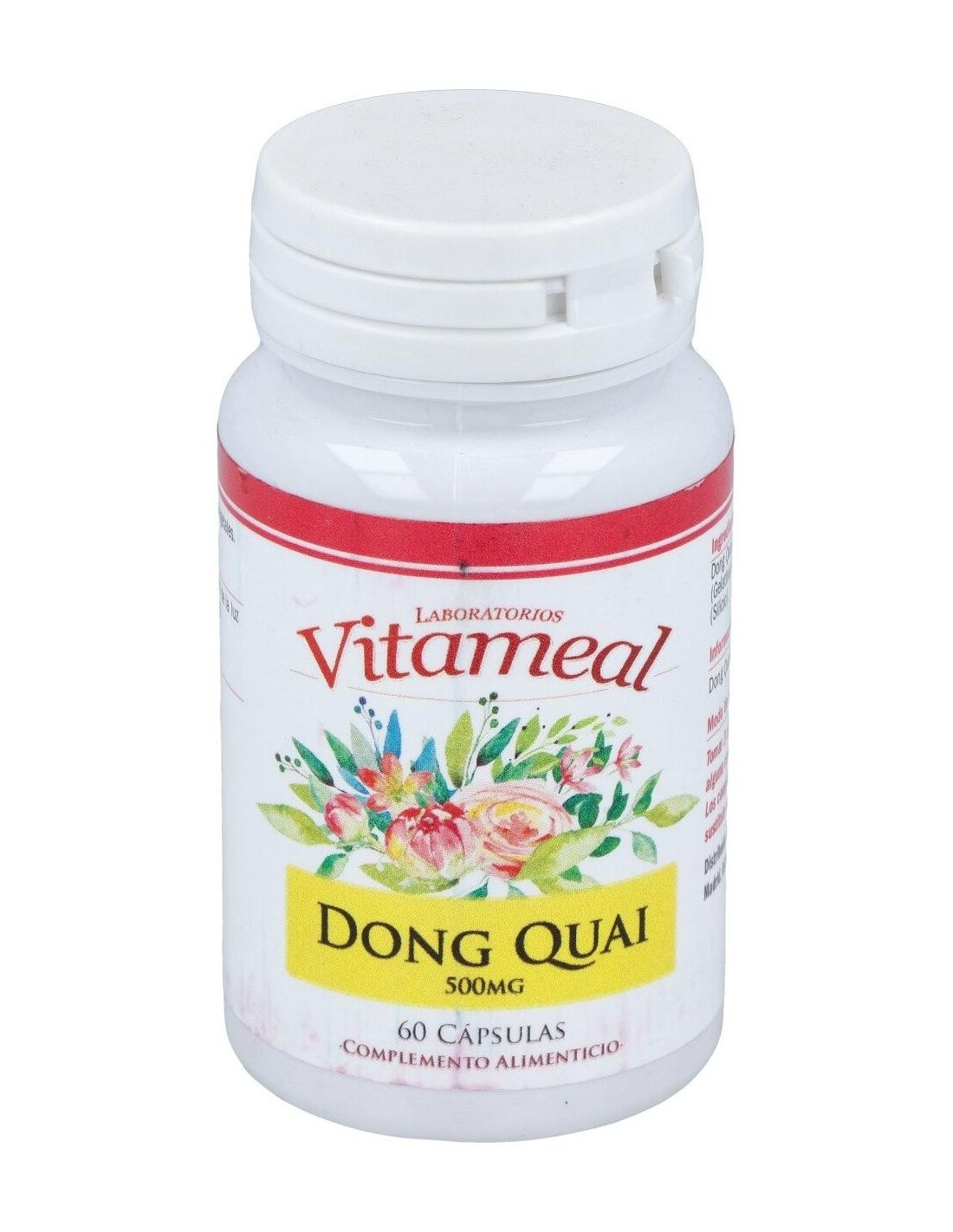 VITAMEALEl Dong Quai (Angelica Sinensis) 500Mg. 60Cap. de Vitameal es un suplemento herbal dirigido a personas interesadas en el bienestar femenino, que aporta apoyo natural mediante extracto estandarizado de Angelica Sinensis.