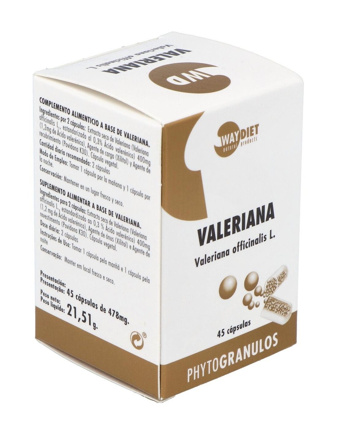 Valeriana Phytogranulos 45Caps. de Waydiet Natural Products ofrece una alternativa natural para quienes buscan complementar su rutina diaria con ingredientes derivados de plantas.
