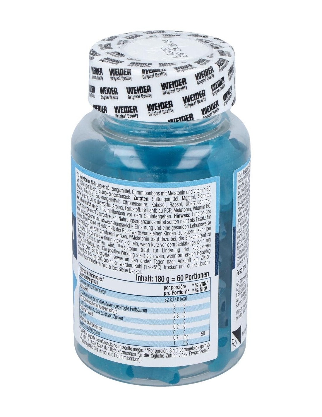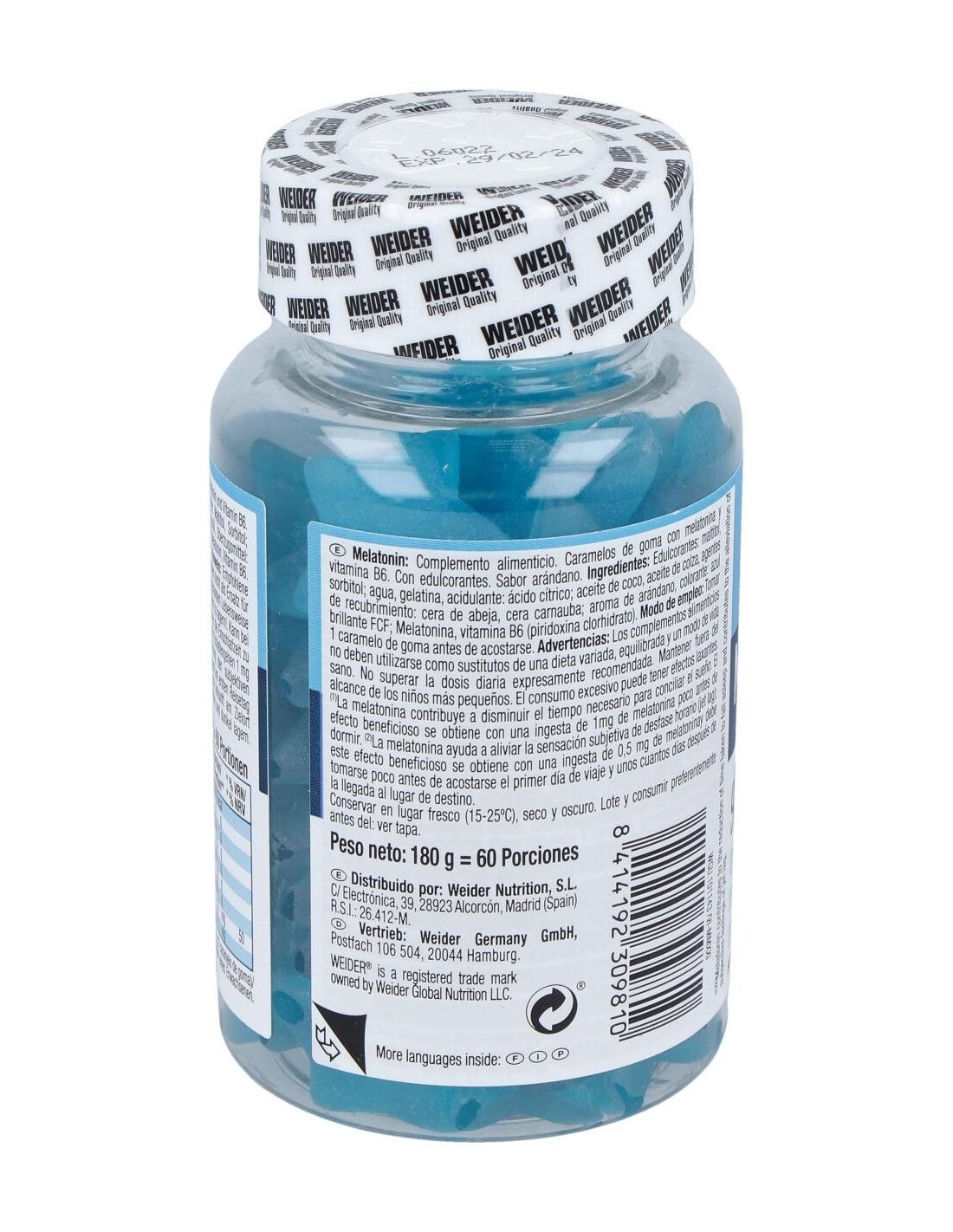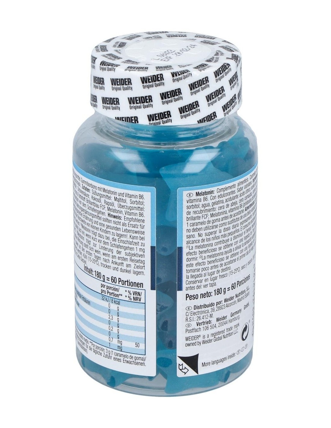 WEIDERWeider Gummy Melatonina 60Gummies de Weider es un suplemento en gomitas diseñado para personas que buscan apoyar su descanso nocturno, facilitando la ingesta de melatonina en una presentación práctica y fácil de consumir.