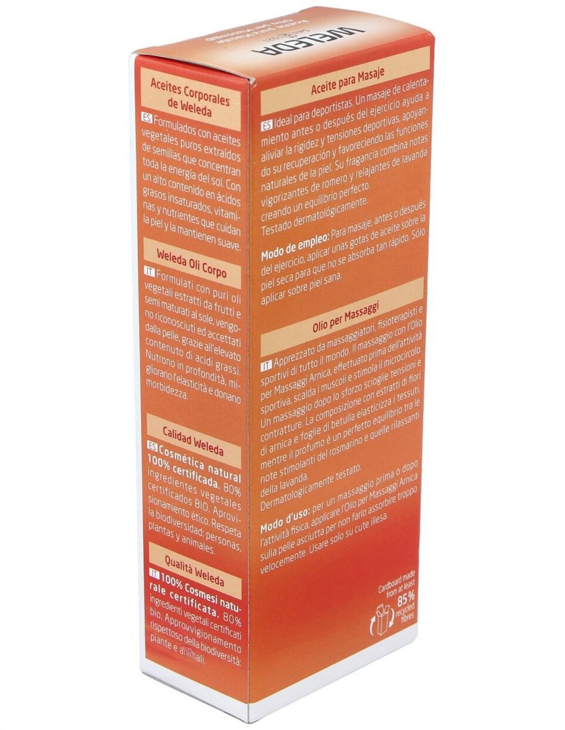 WELEDACon extractos biológicos de árnica, planta conocida por sus extraordinarias propiedades medicinales, este aceite de masaje es ideal antes y después de