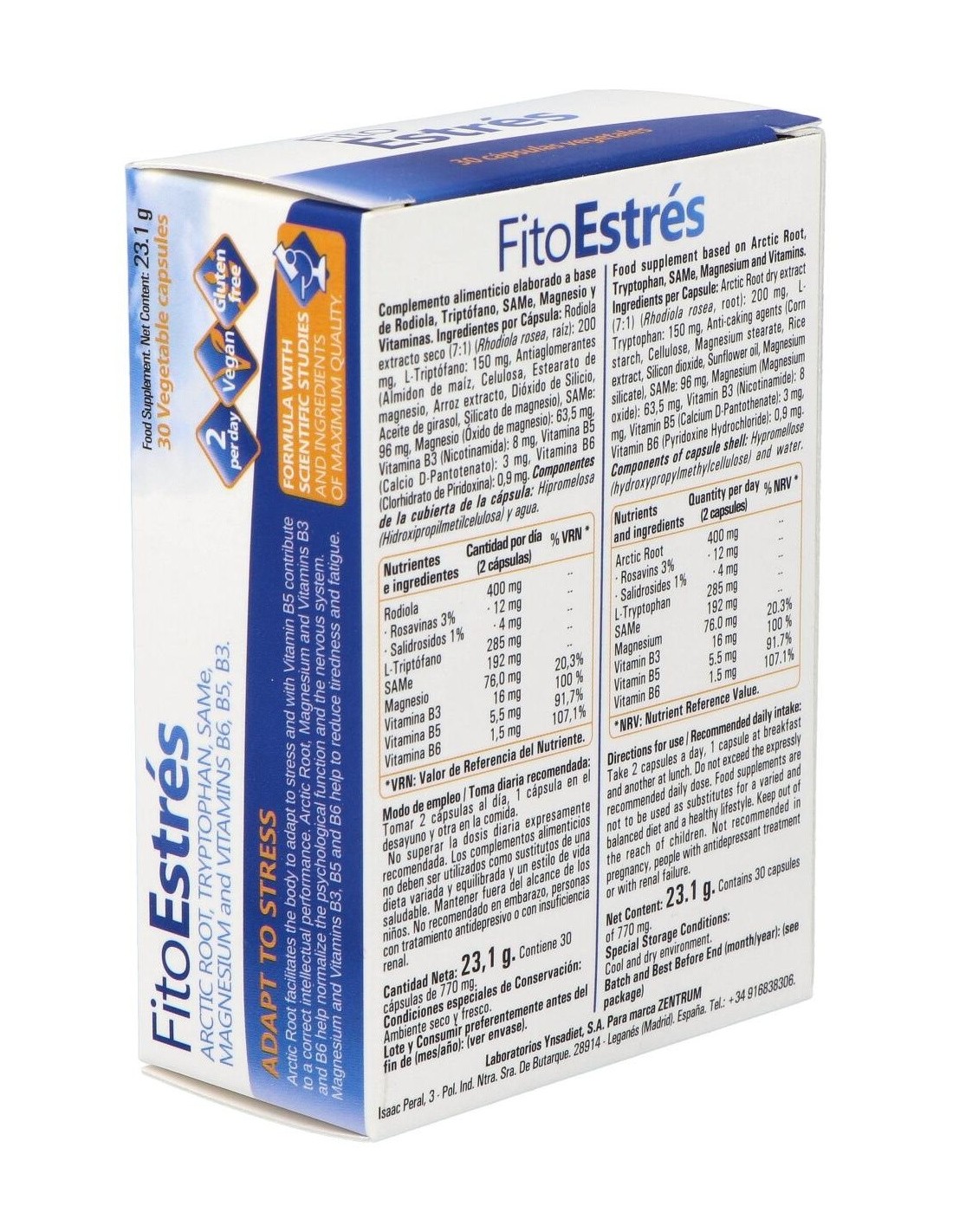 YNSADIETFito Estrés 30 Caps. V de Ynsadiet es un complemento natural para personas que buscan apoyar su bienestar emocional, formulado con extractos vegetales que contribuyen a la relajación y el equilibrio diario.
