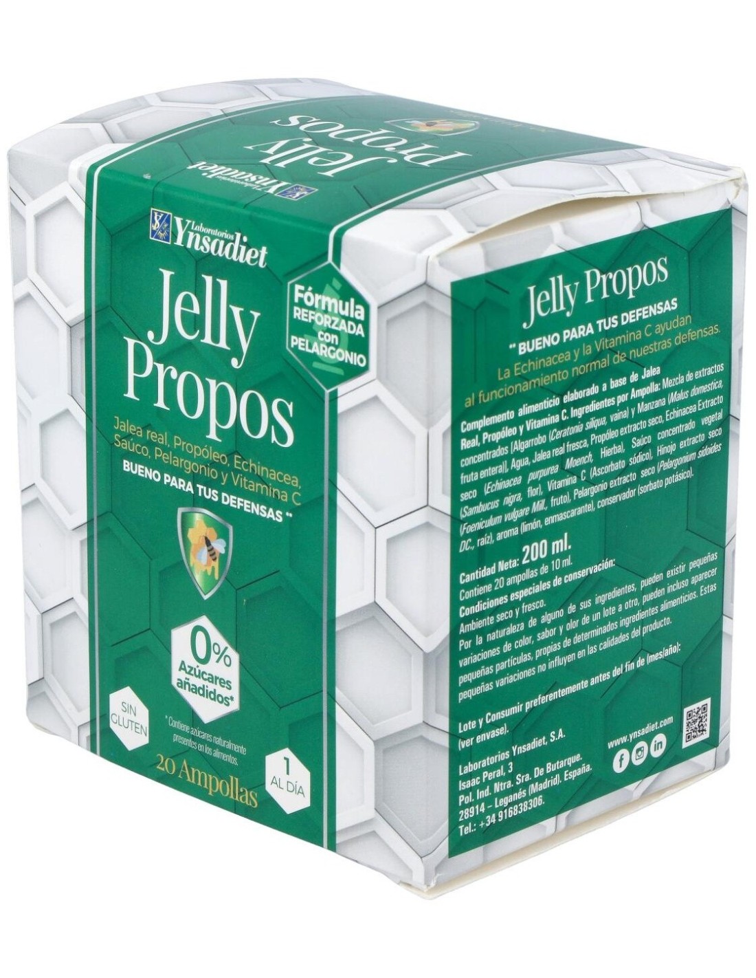 YNSADIETJelly Propos 0% Azúcar 20 Amp de Ynsadiet es un complemento alimenticio para personas que buscan apoyar su bienestar diario, formulado sin azúcar para una opción ligera y práctica en ampollas.